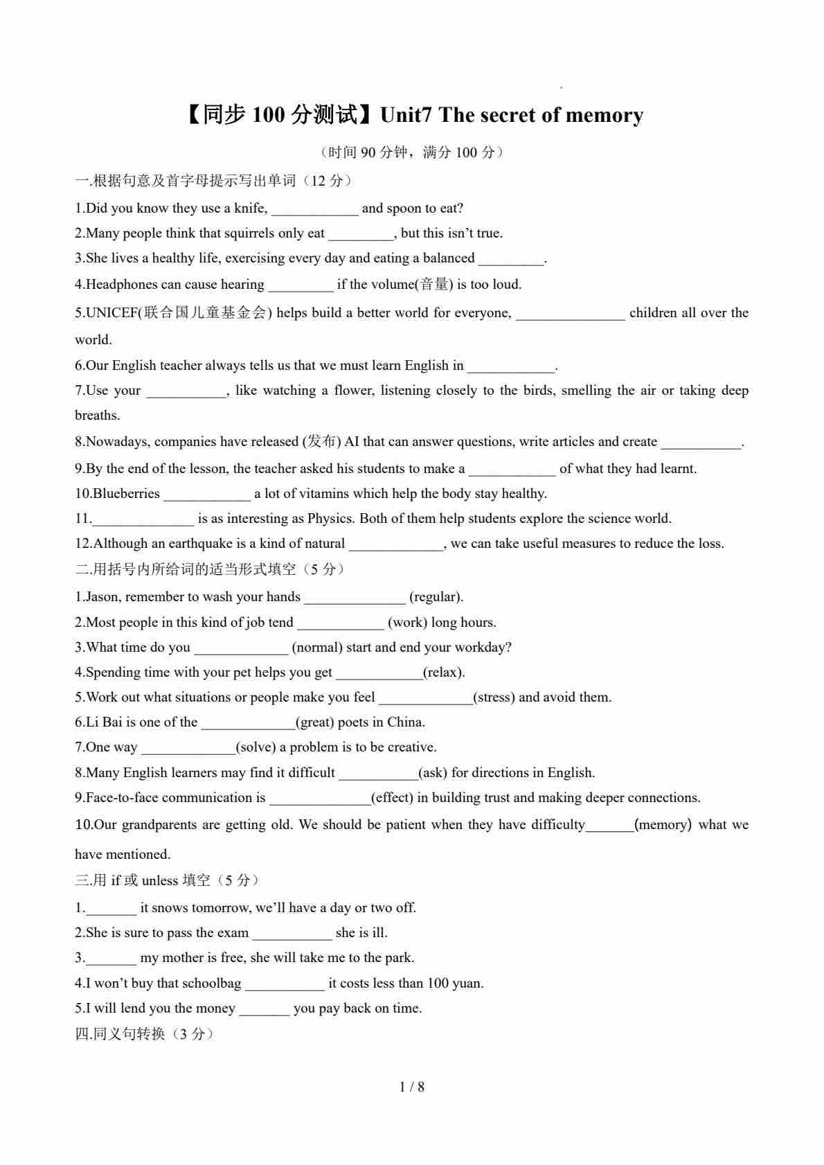 Unit7 The secret of memory(原卷版)