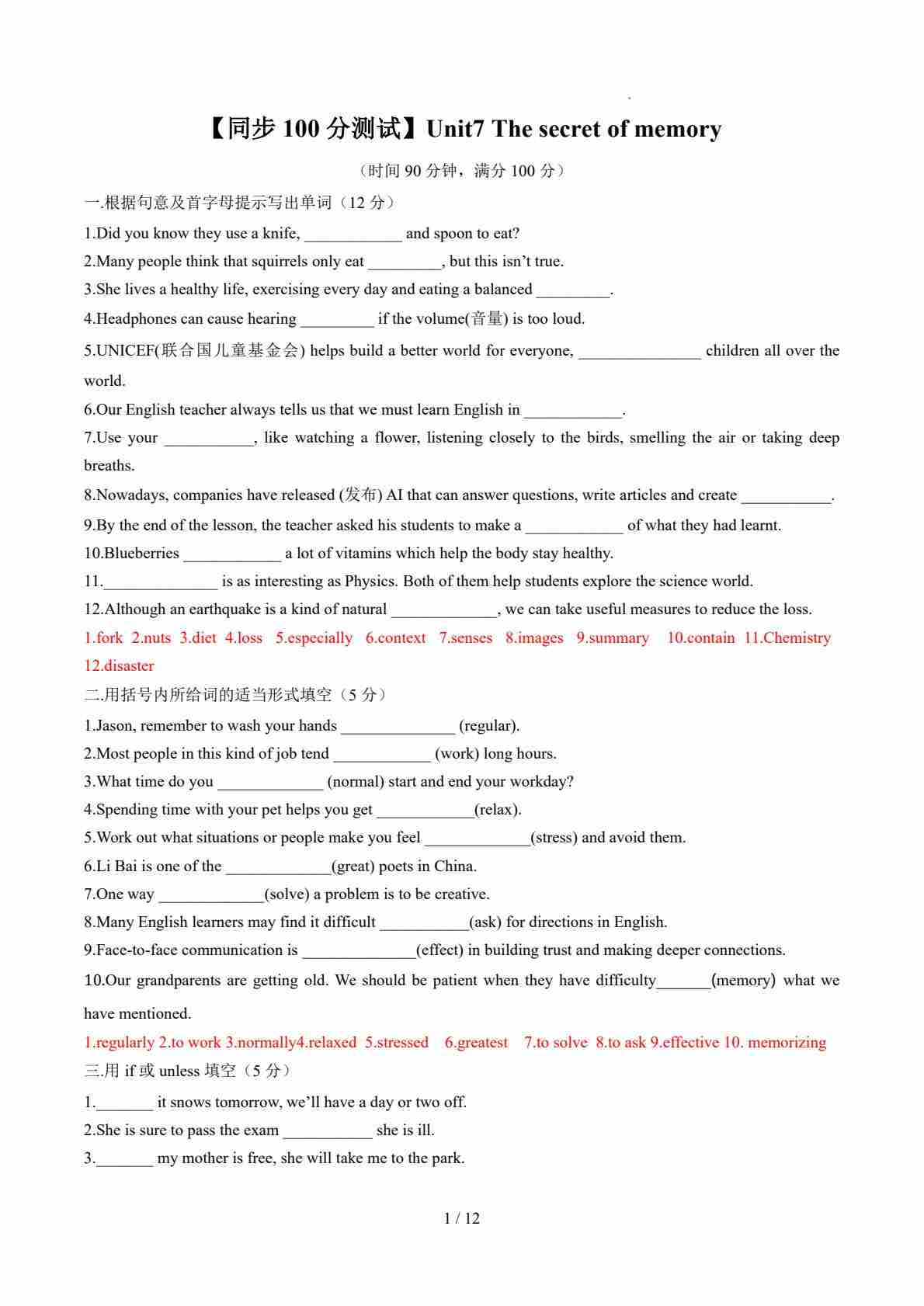 Unit7 The secret of memory(解析版)