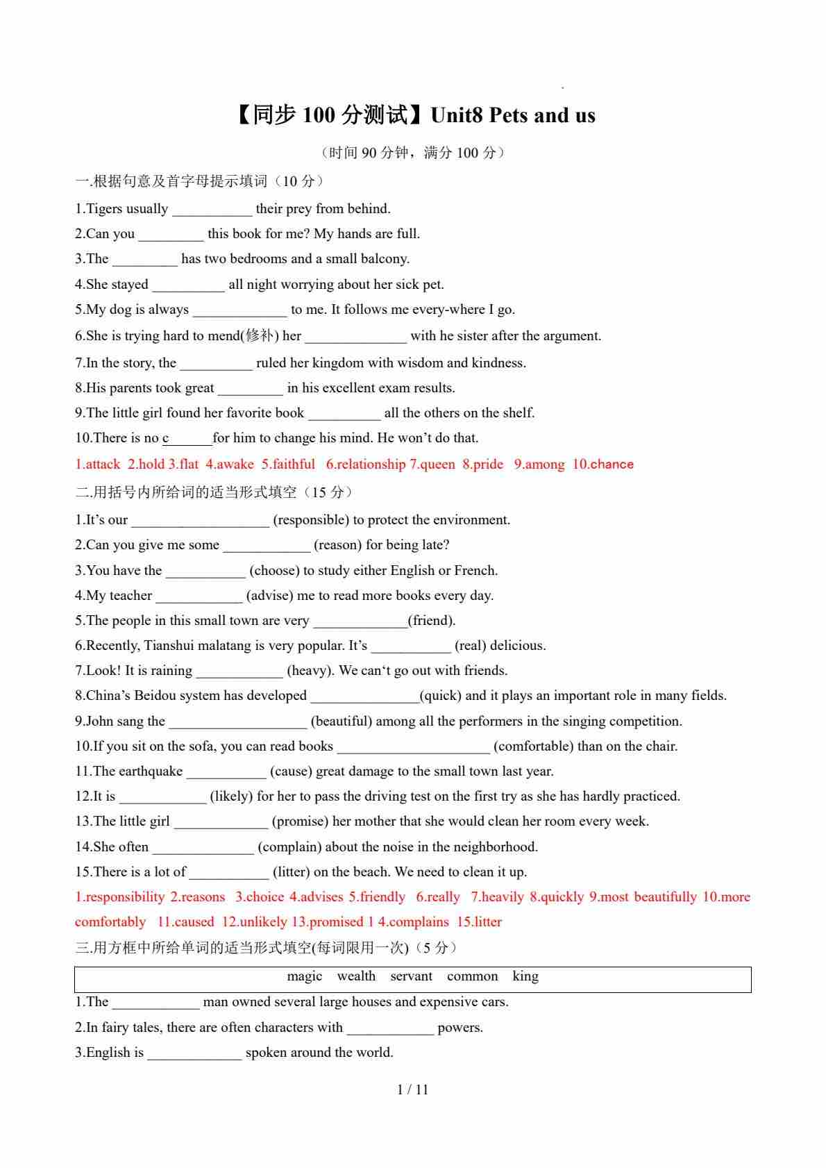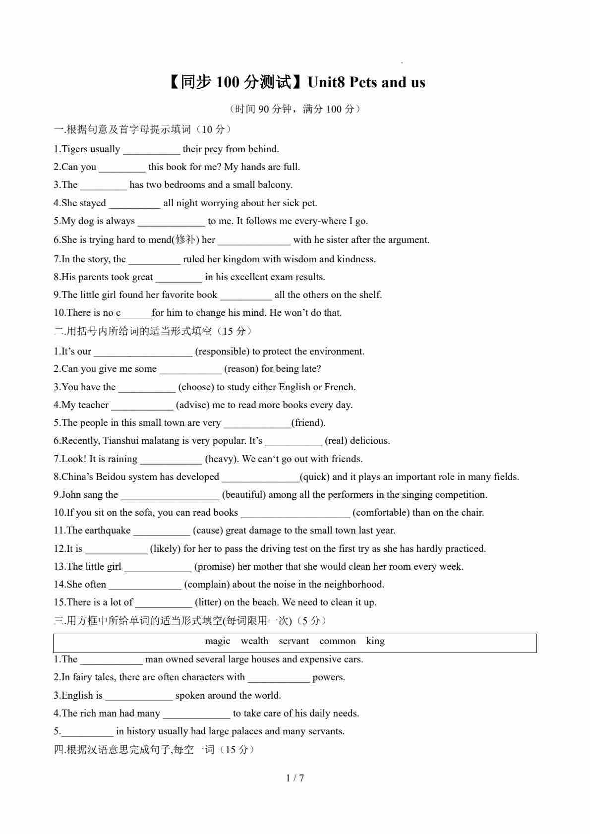 Unit8 Pets and us(解析版)