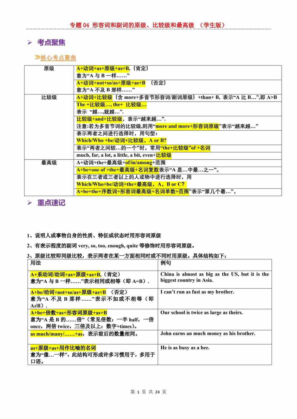 【复习讲义】专题04 形容词和副词的原级、比较级和最高级