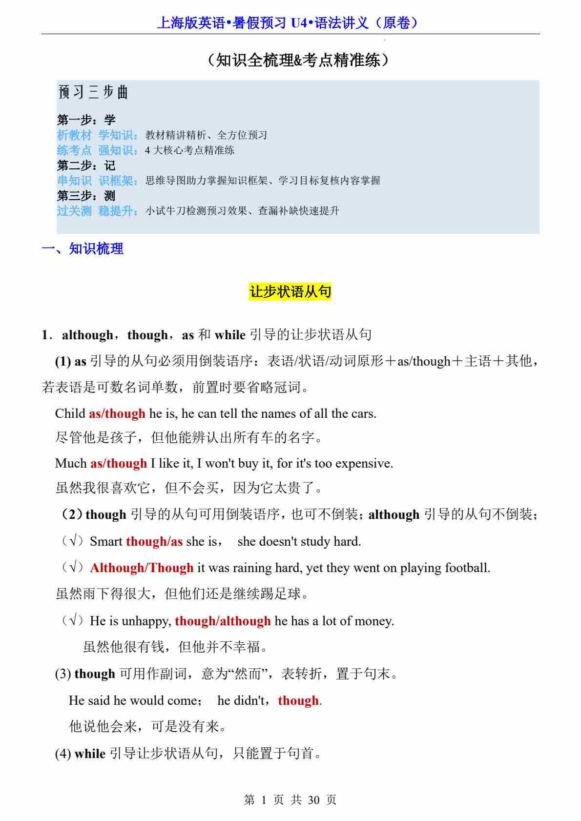 -沪教54--版---Unit1&2时间状语从句•语法讲义