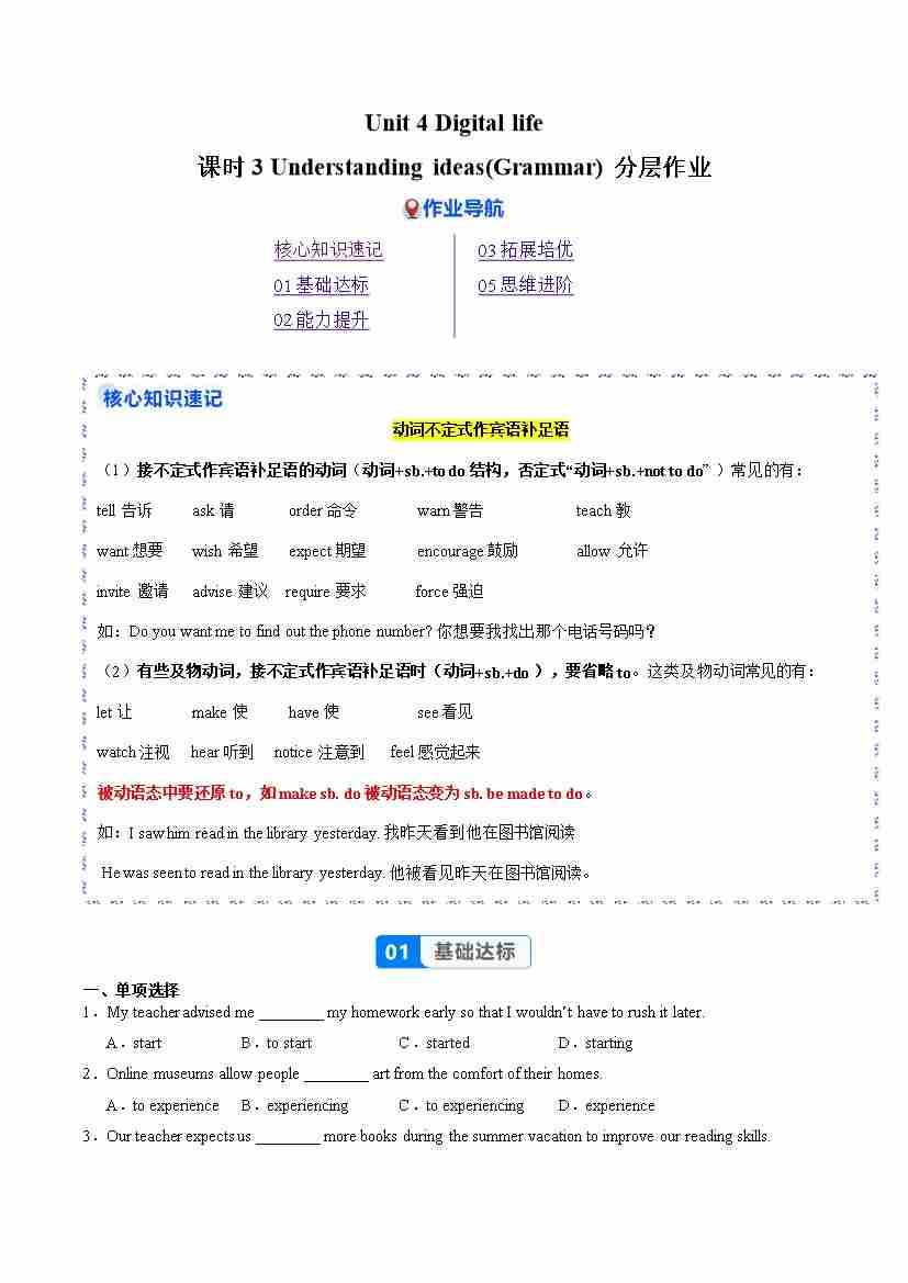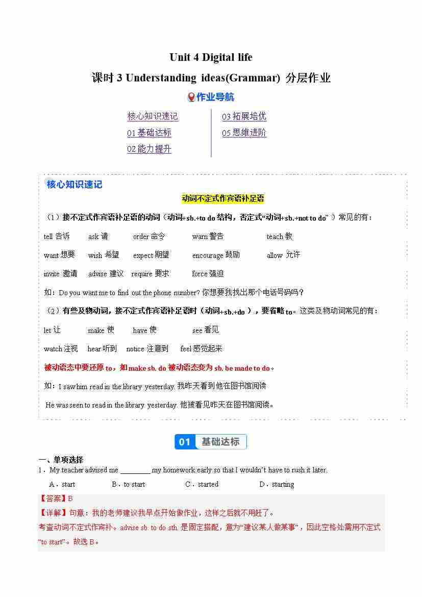 Unit 4 课时3 Understanding ideas(Grammar)(分层作业)(解析版)