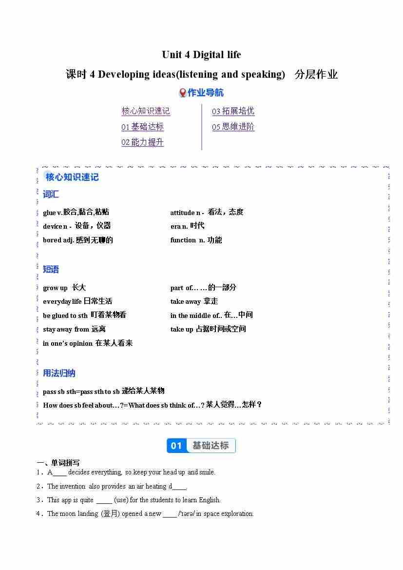Unit 4 课时4 Developing ideas(Listening and speaking)(分层作业)(原卷版)
