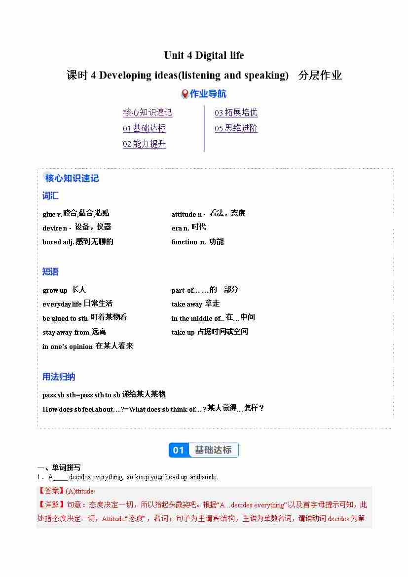 Unit 4 课时4 Developing ideas(Listening and speaking)(分层作业)(解析版)
