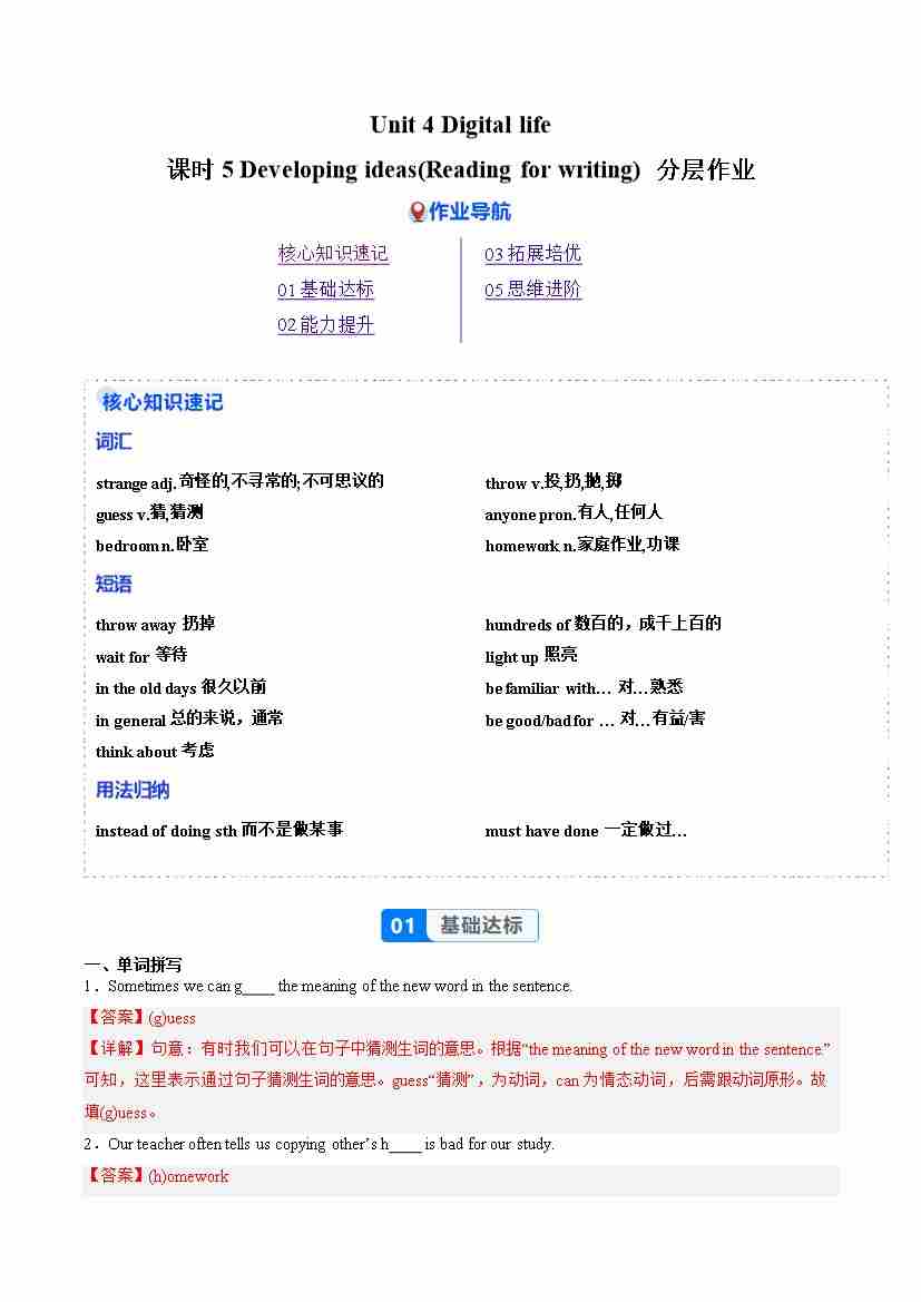 Unit 4 课时5 Developing ideas(Reading for writing)(分层作业)(解析版)