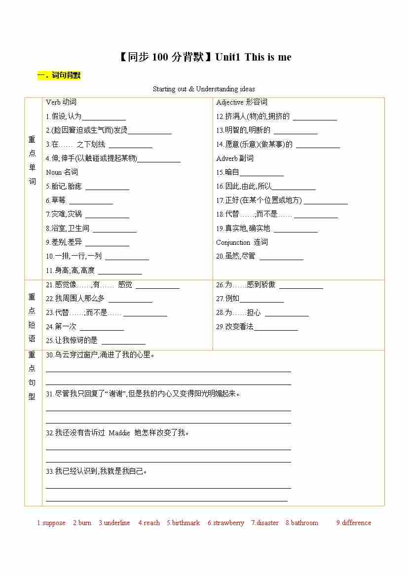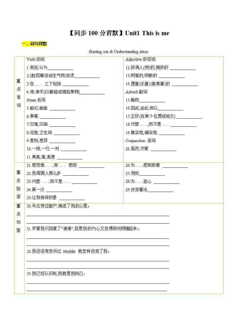 【背默】Unit1 This is me(学生版)