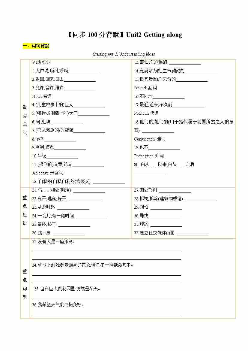【背默】Unit2 Getting along(学生版)
