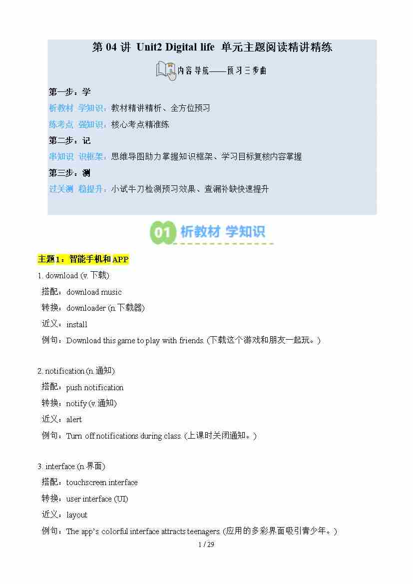 第02部分-新知预习:第04讲 Unit2 Digital life 单元主题阅读精讲精练(学生版)