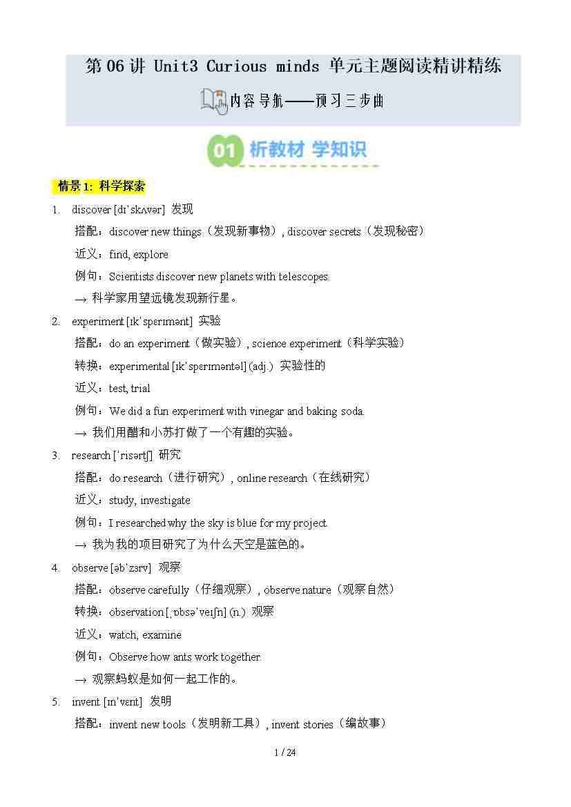 第02部分-新知预习:第06讲 Unit3 Curious minds 单元主题阅读精讲讲练(学生版)