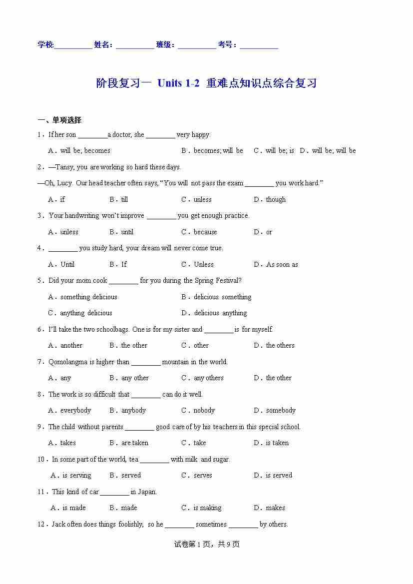 月考试卷
