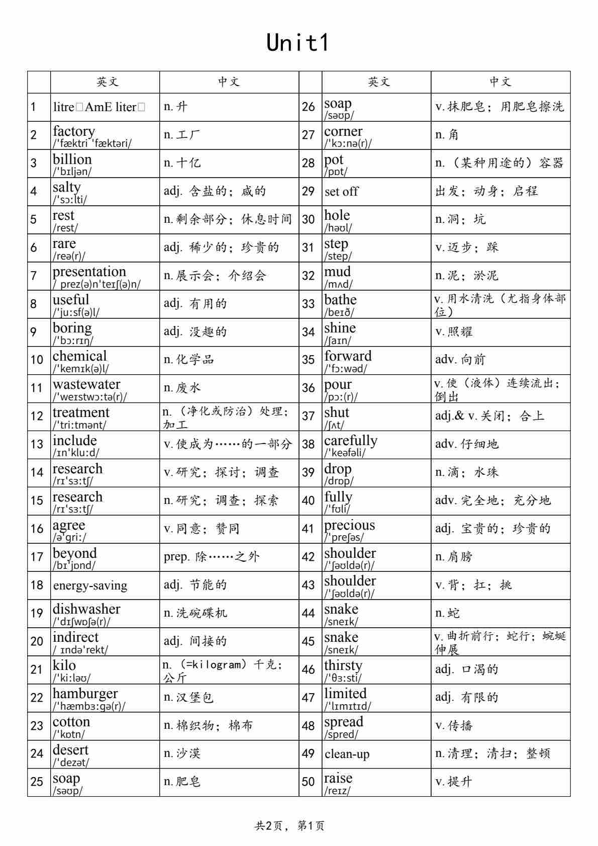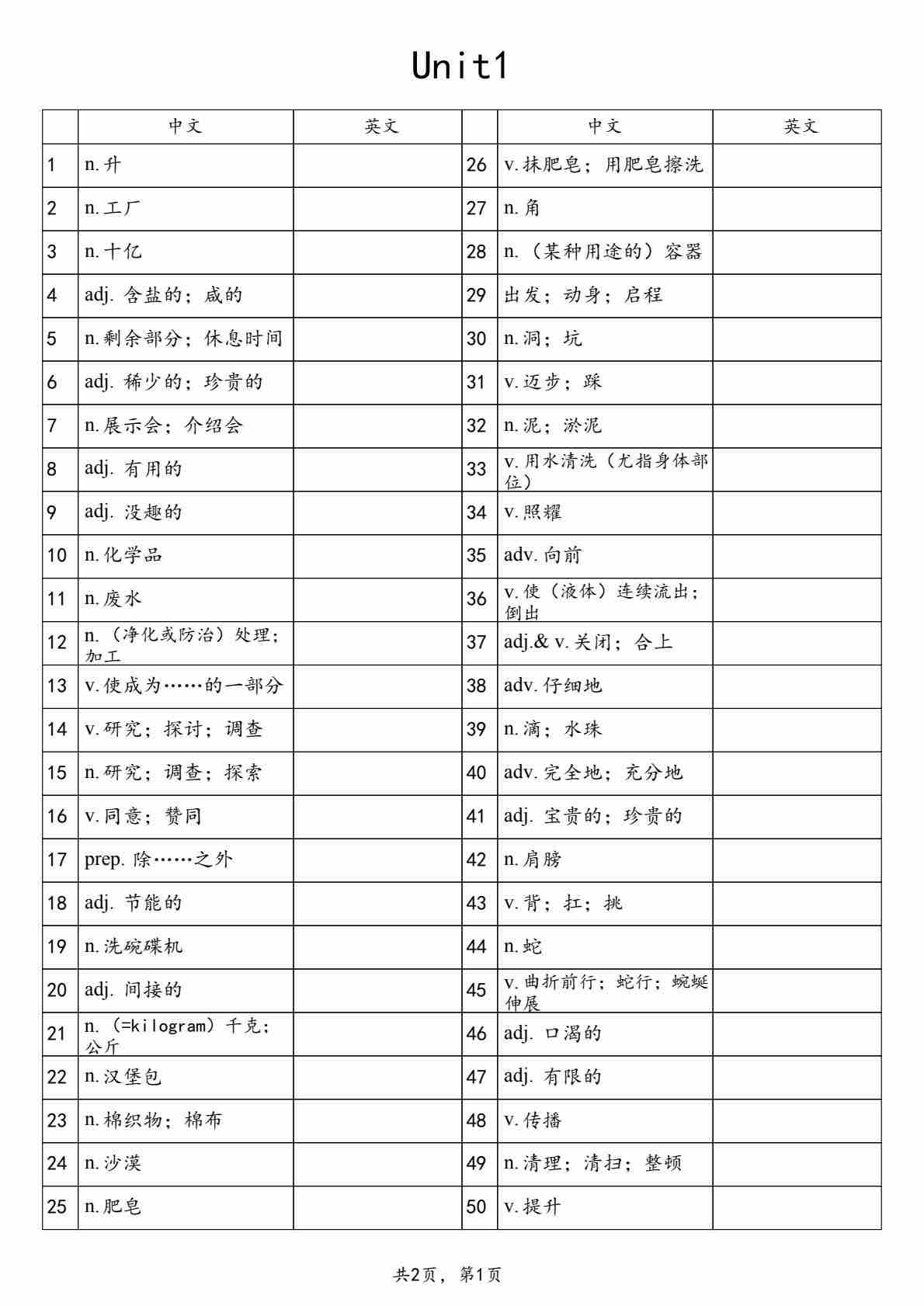 【沪教54】八上英语单词表默写