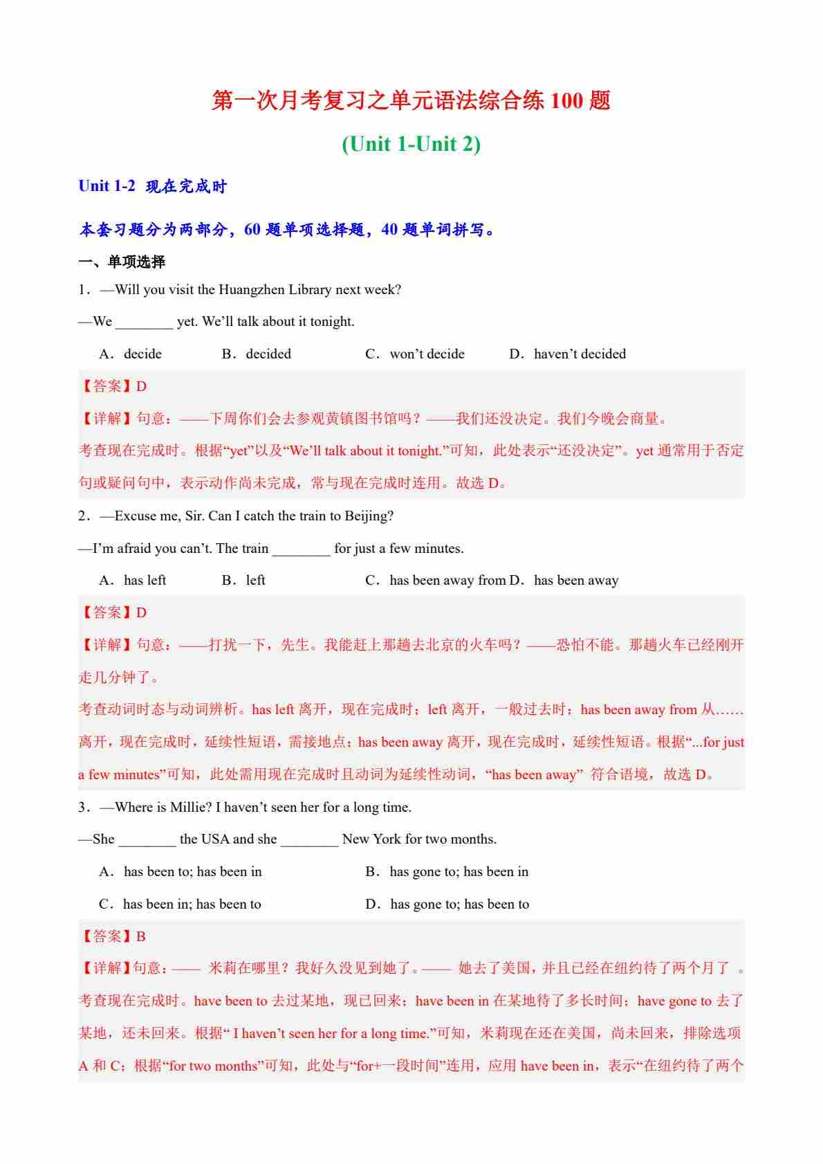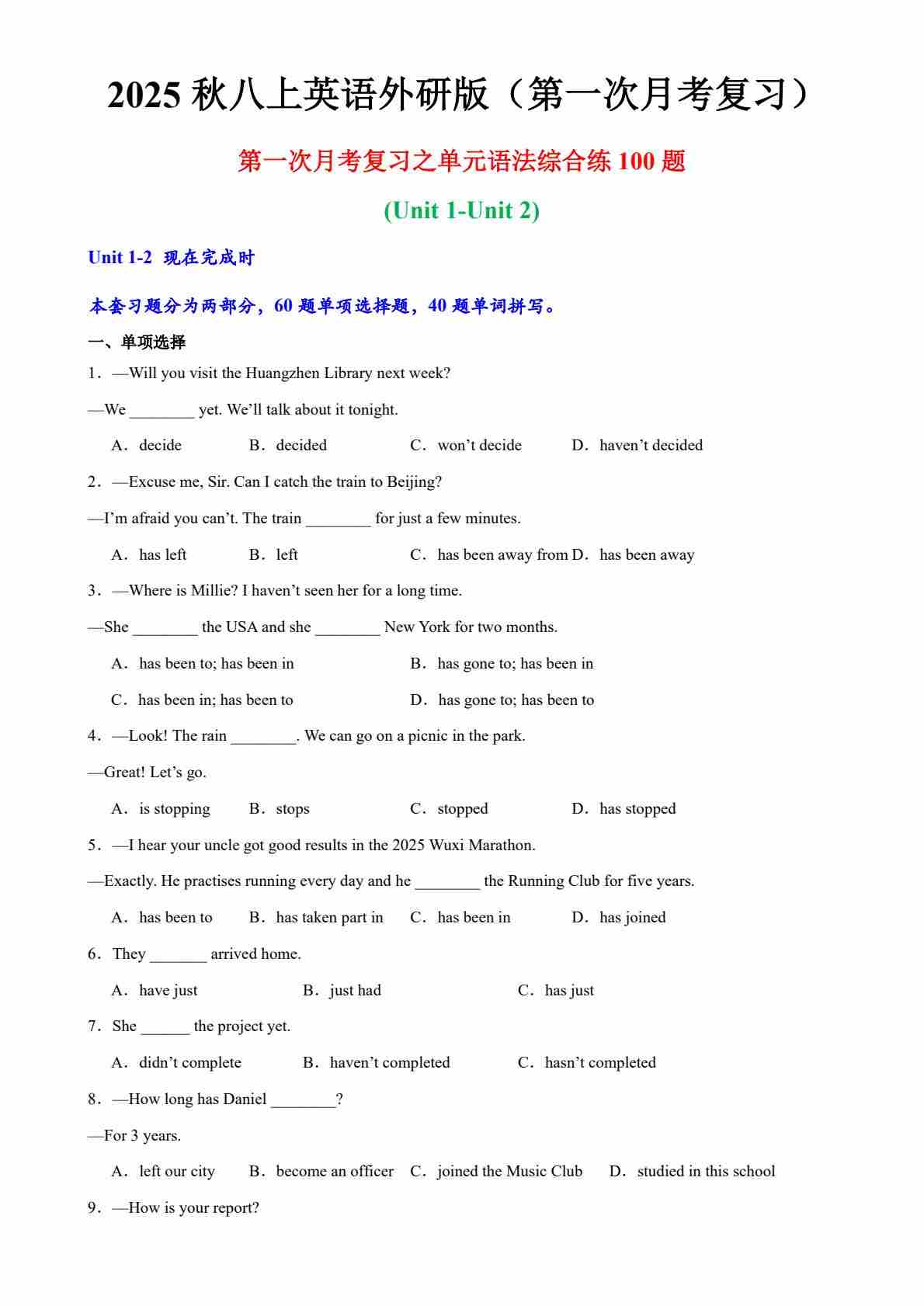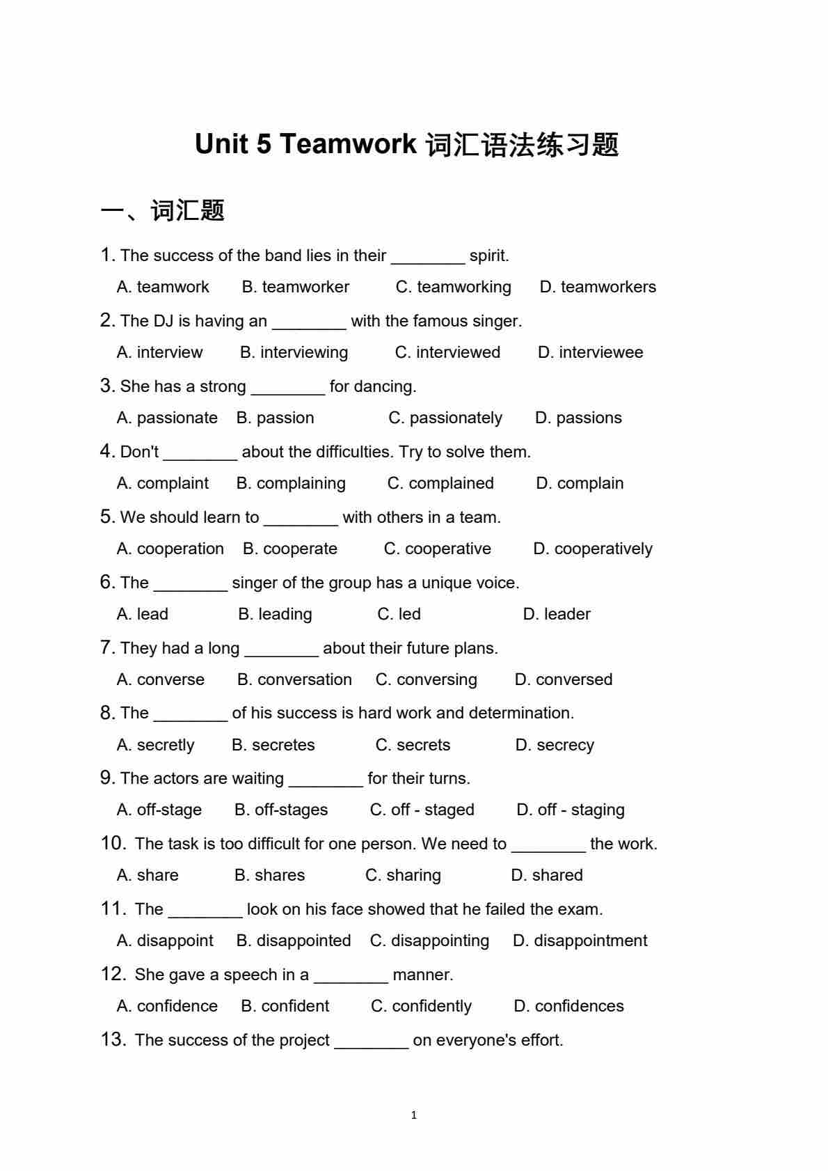 沪教54版---Unit 5 Teamwork 词汇语法练习题(含答案解析))【沪教版(五四学制)(2024)八上英语】