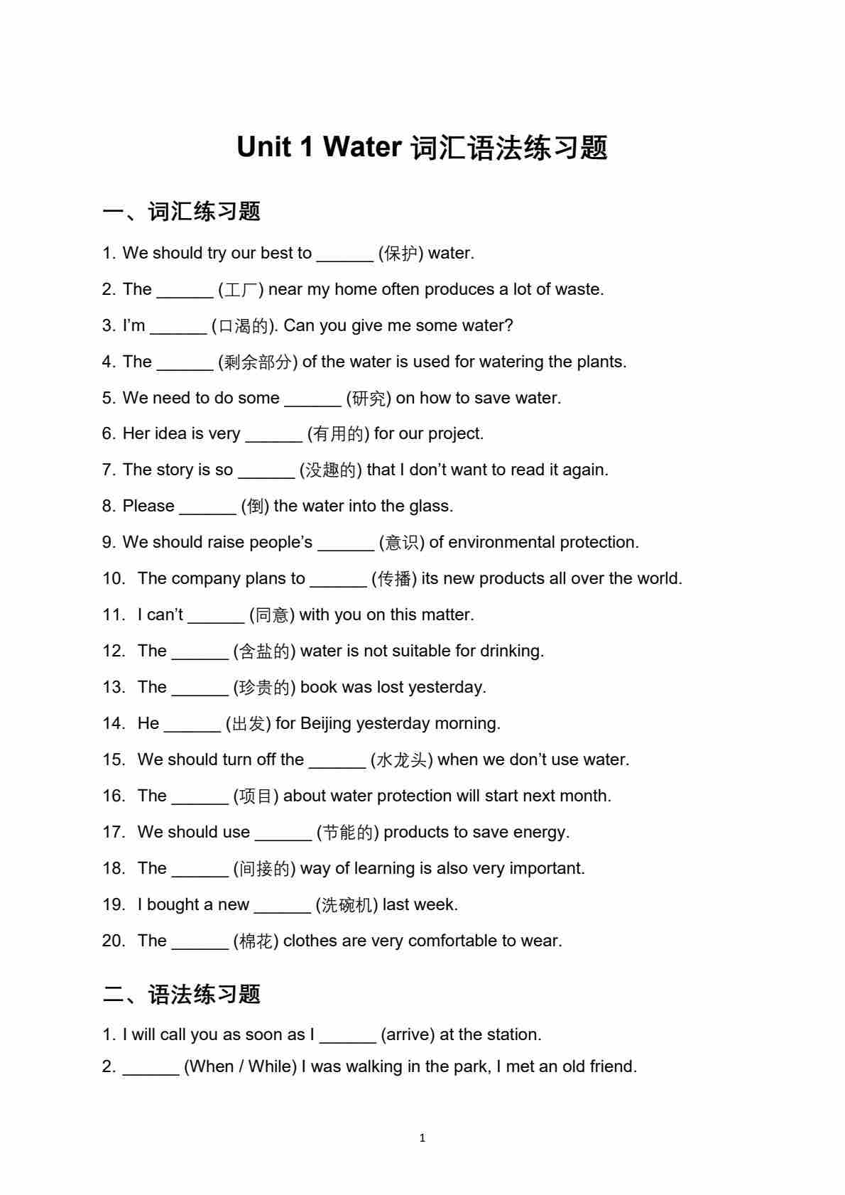 沪教54版---Unit 1 Water 词汇语法练习题(含答案解析)