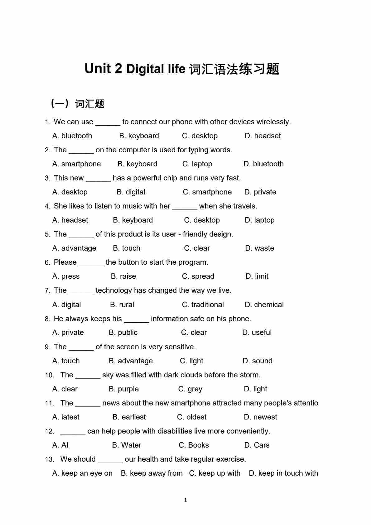 沪教54版---Unit 2 Digital life 词汇语法练习题(含答案解析)