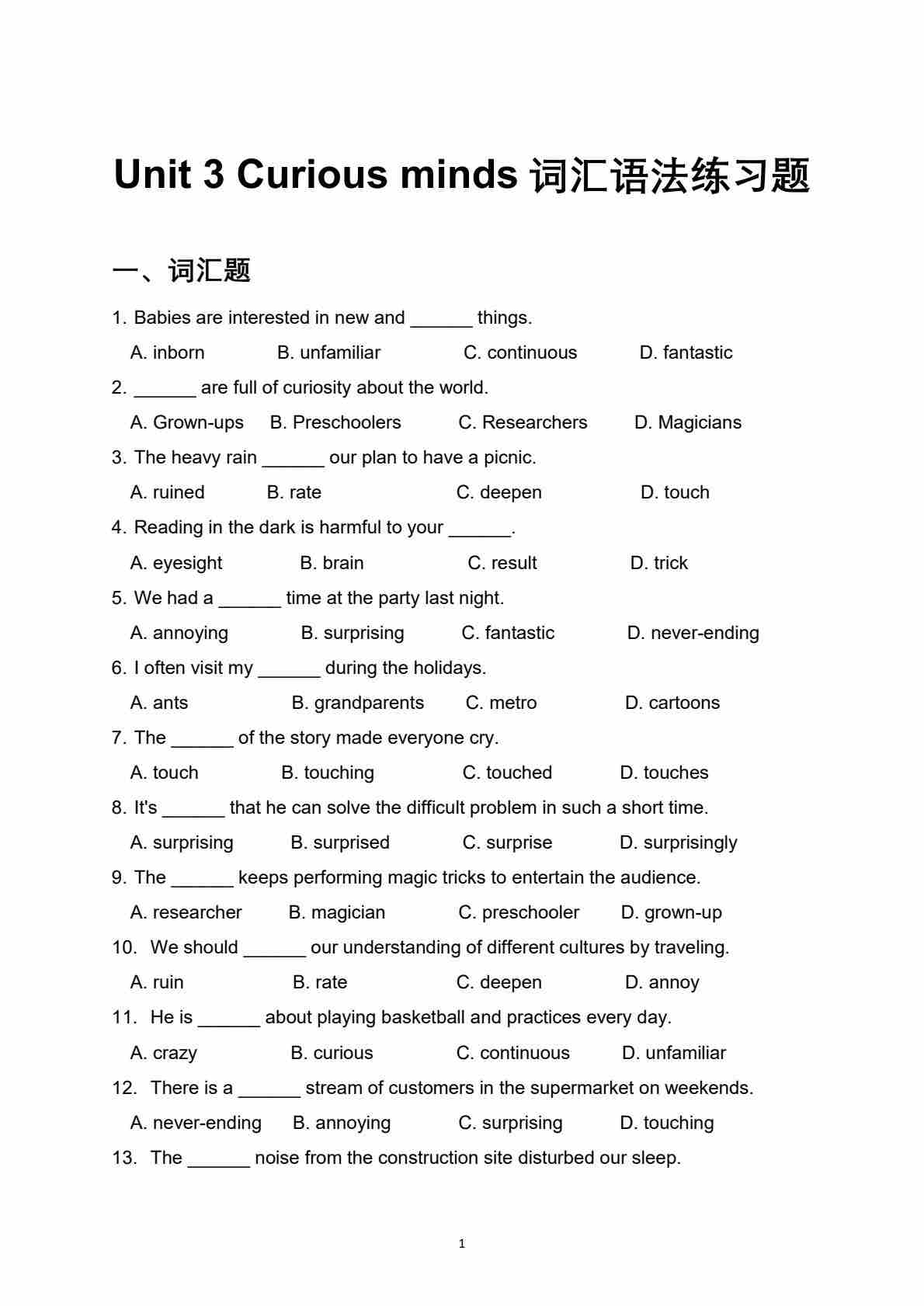 沪教54版---Unit 3 Curious minds词汇语法练习题(含答案解析))【沪教版(五四学制)(2024)八上英语】