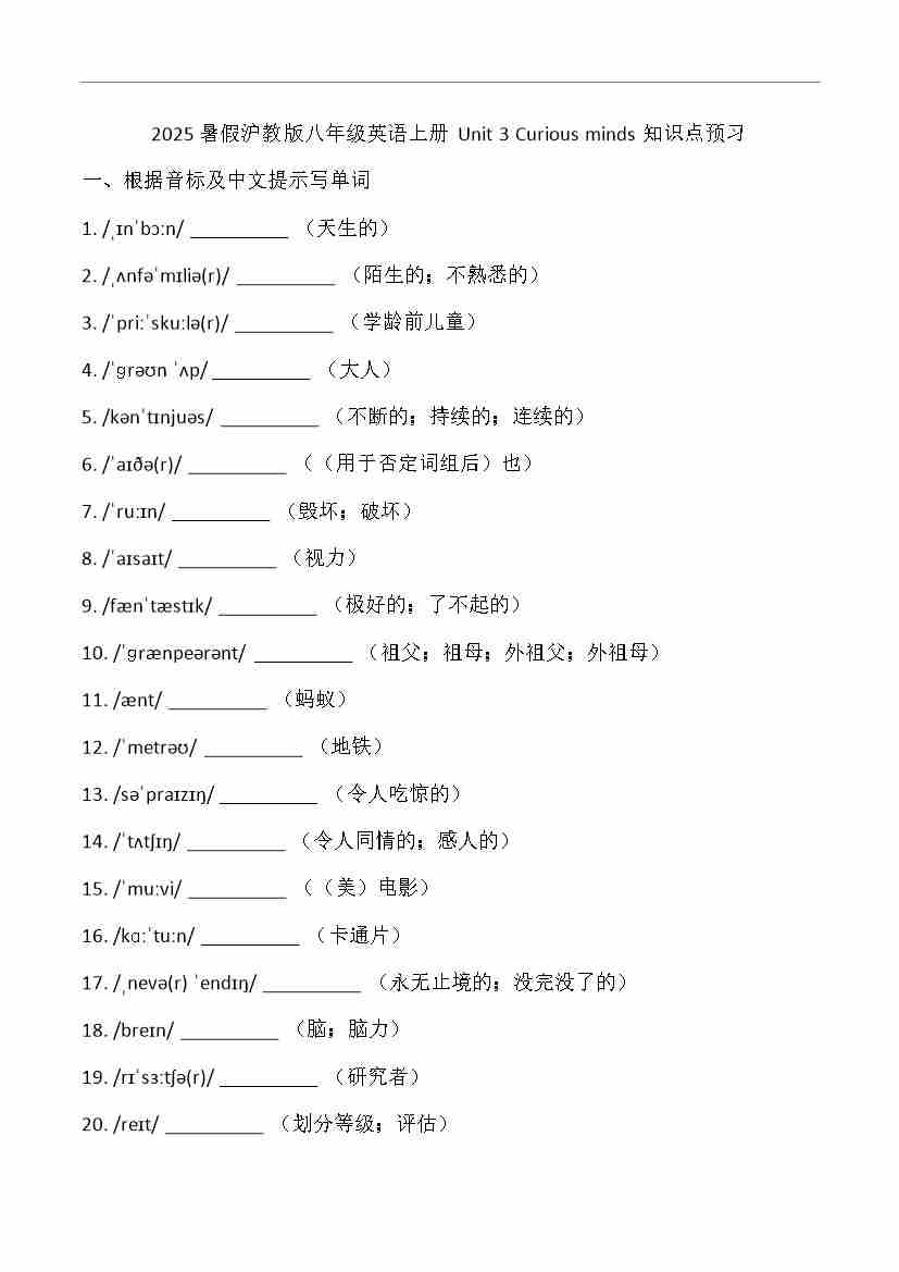 (2024)八年级上册Unit 3 Curious minds知识点预习(含答案)2025年暑假沪教版(五四学制)