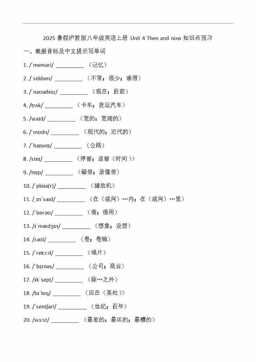 (2024)八年级上册Unit 4 Then and now知识点预习(含答案)2025年暑假沪教版(五四学制)(