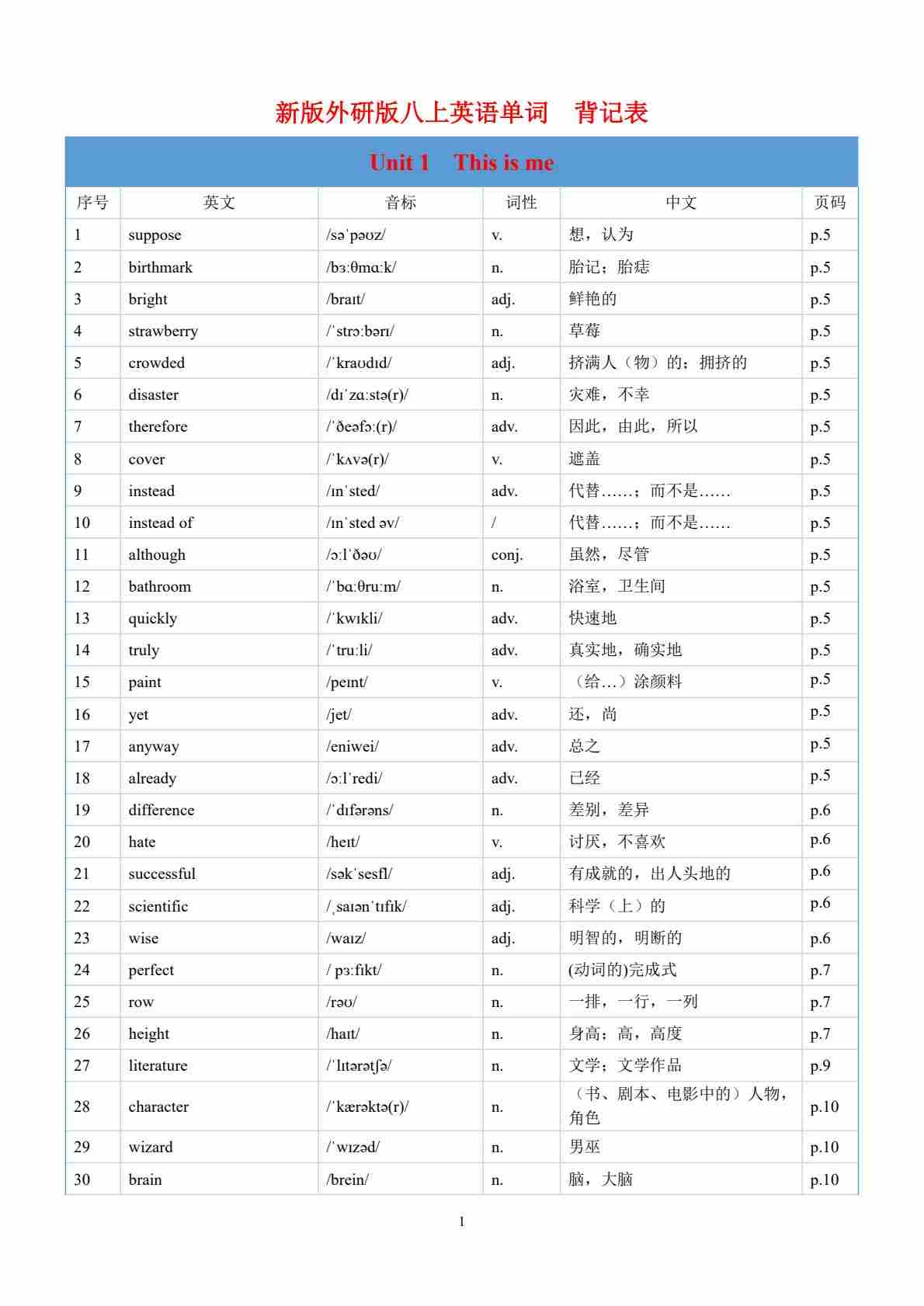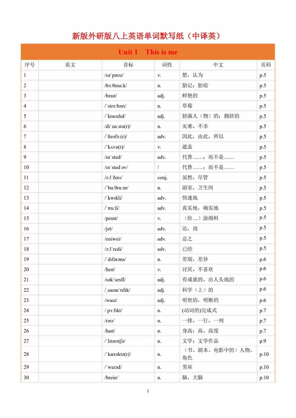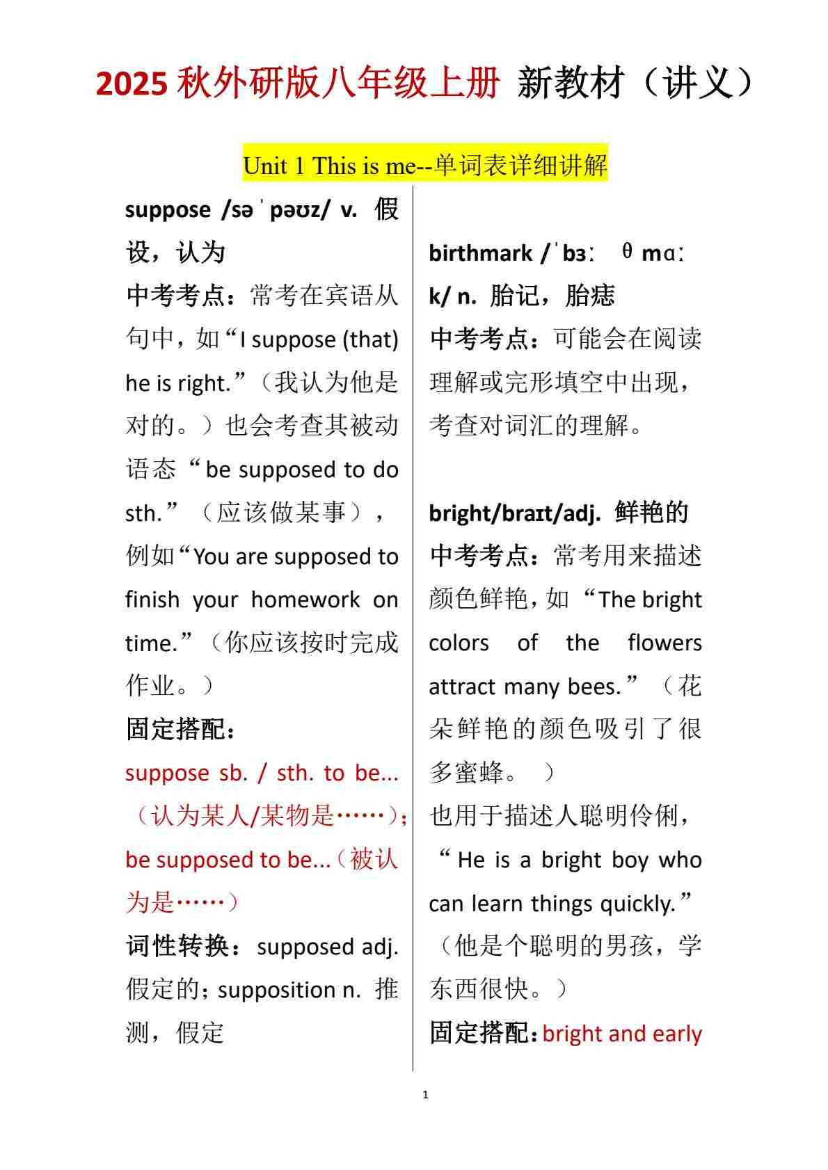 Unit 1 This is me--单词表逐词讲解