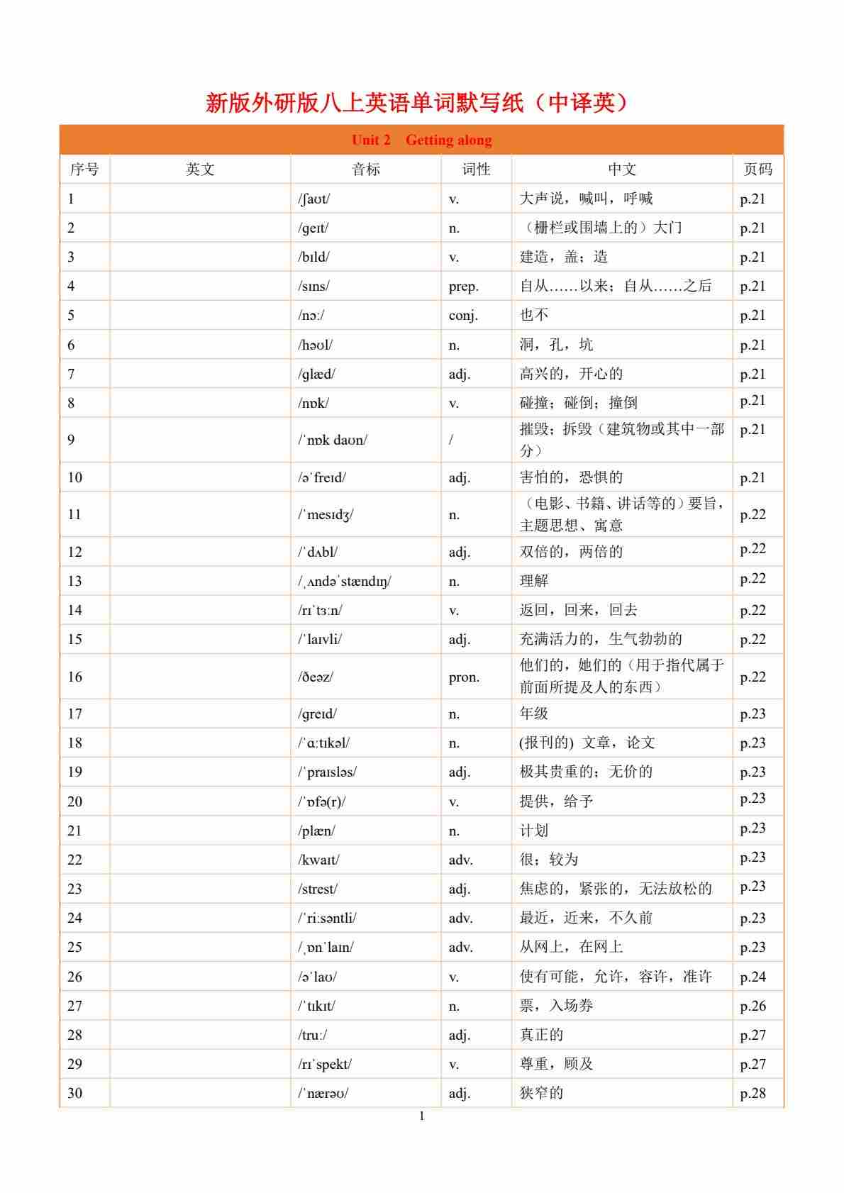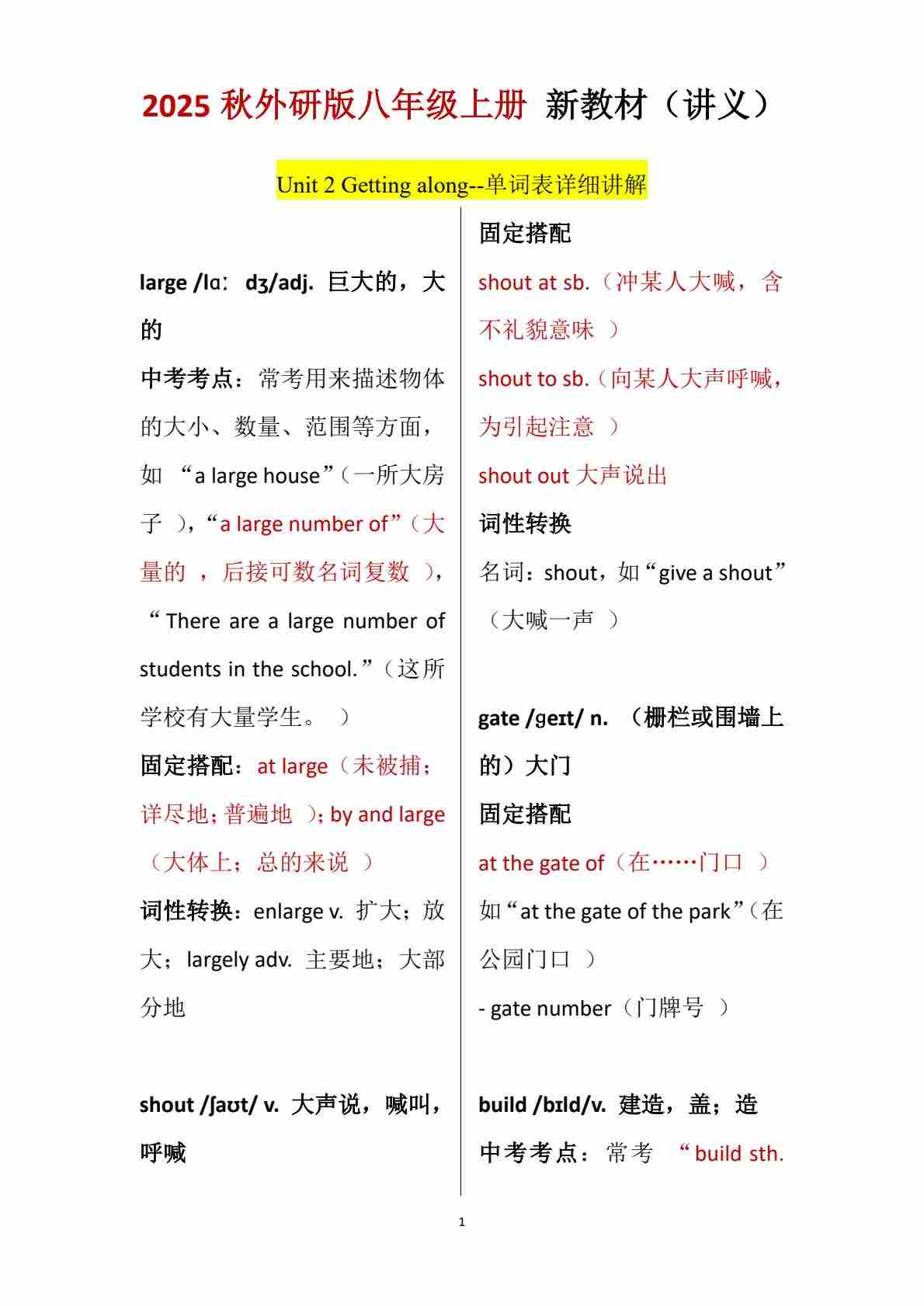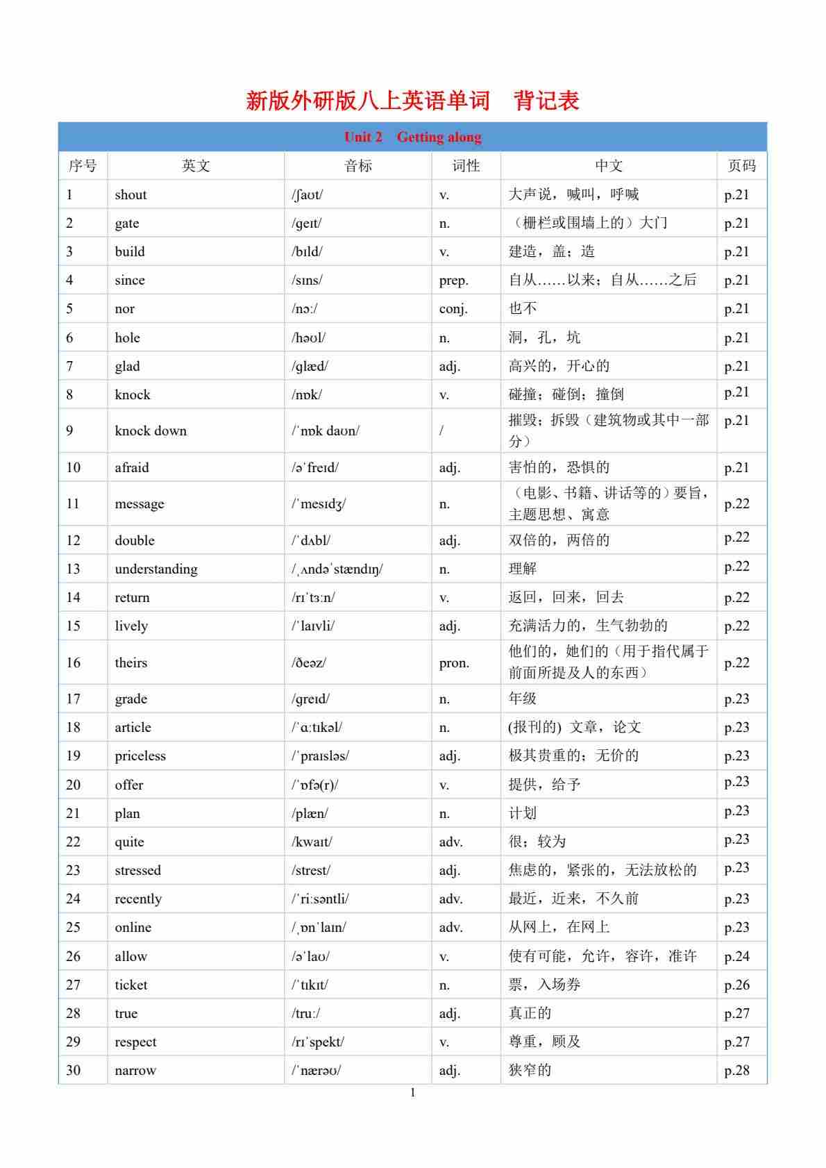 Unit 2 Getting along-单词表逐词讲解