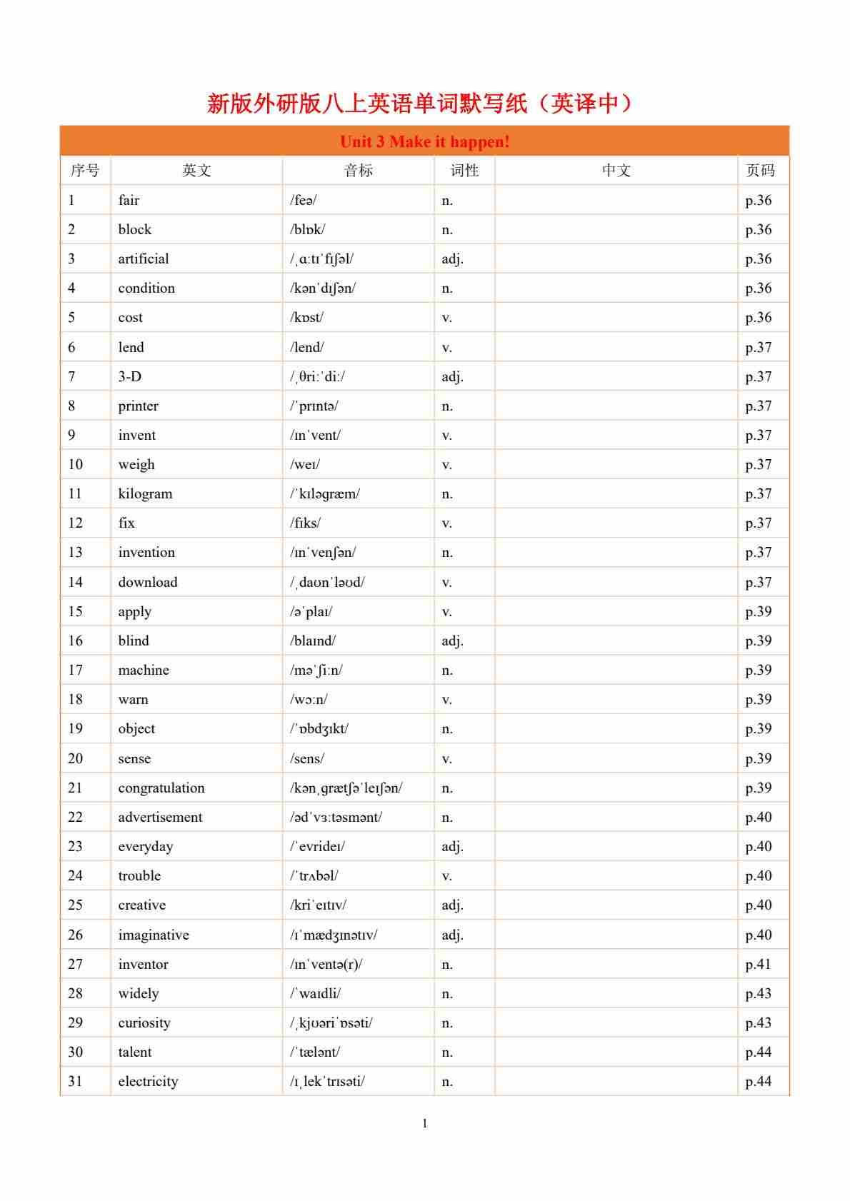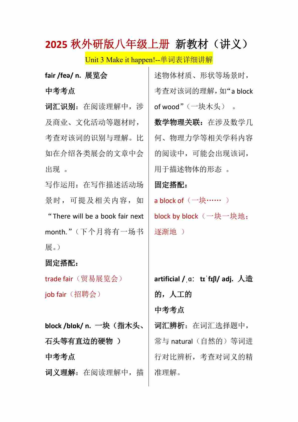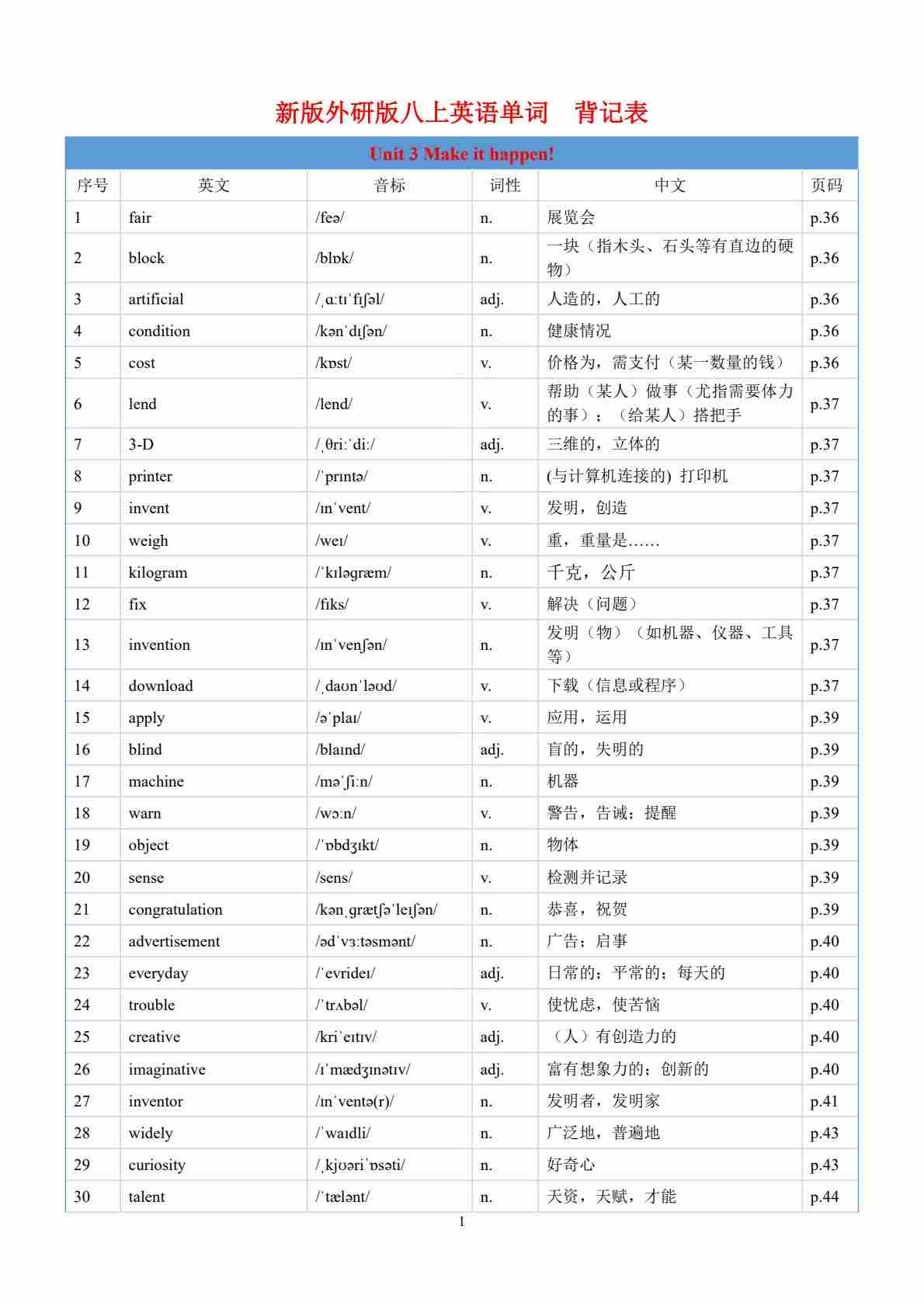 Unit 3 Make it happen!-单词表逐词讲解