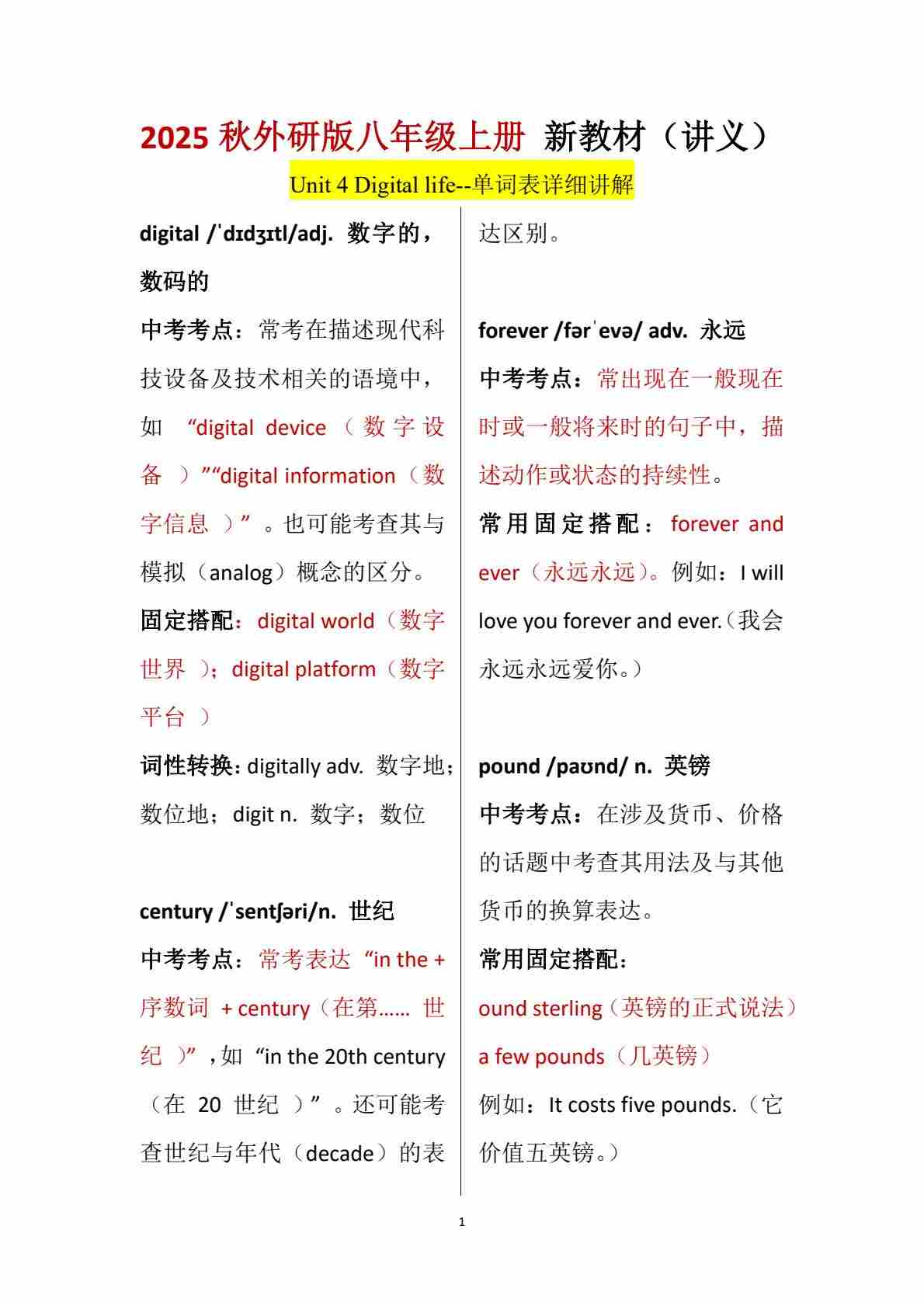Unit 4 Digital life-单词表逐词讲解