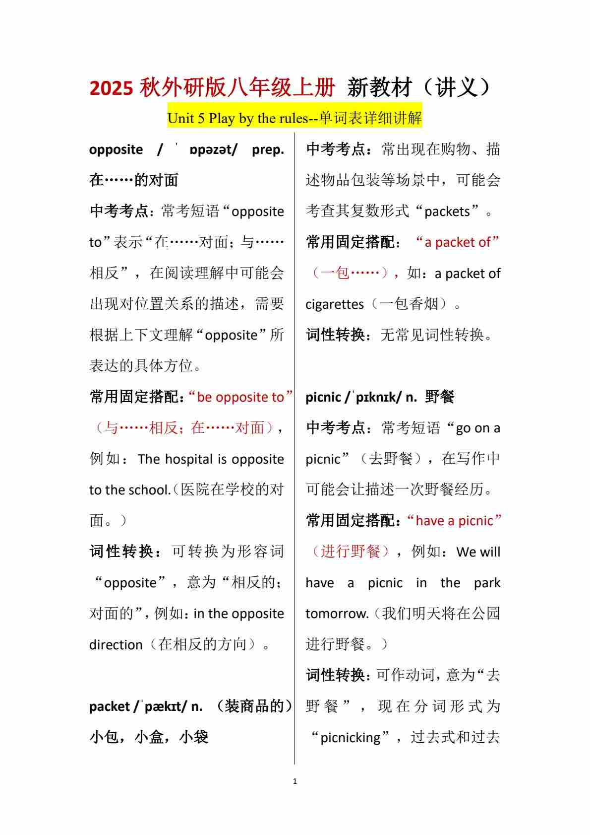 Unit 5 Play by the rules-单词表逐词讲解