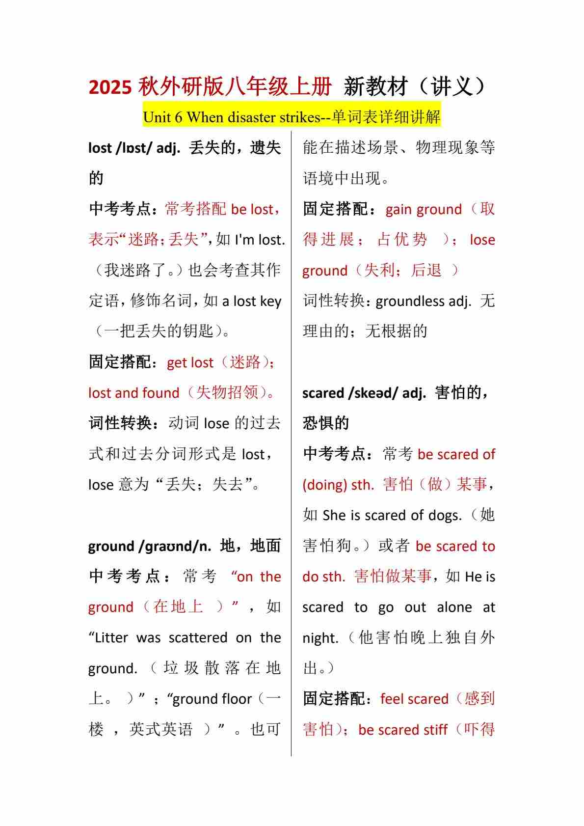 Unit 6 When disaster strikes-单词表逐词讲解