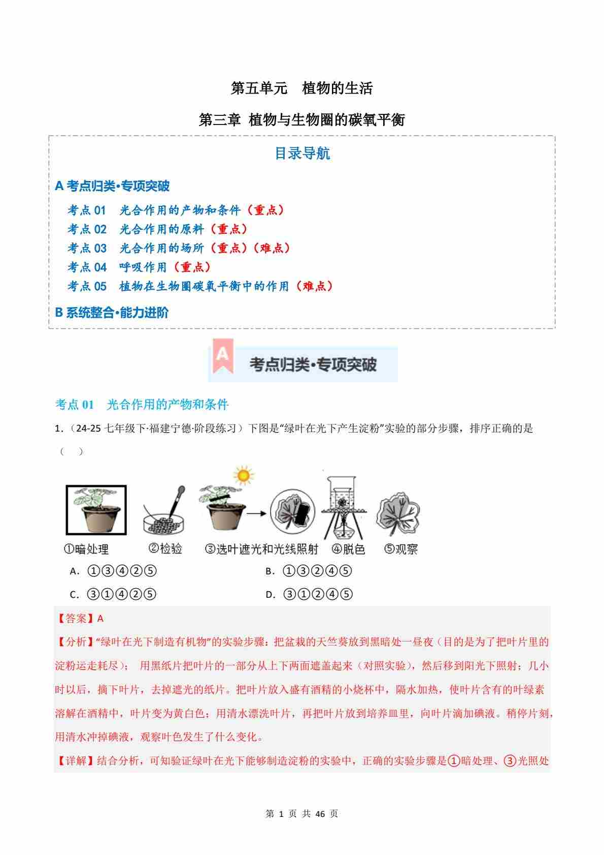 第5单元第3章 植物与生物圈的碳氧平衡(专项训练)(解析版)