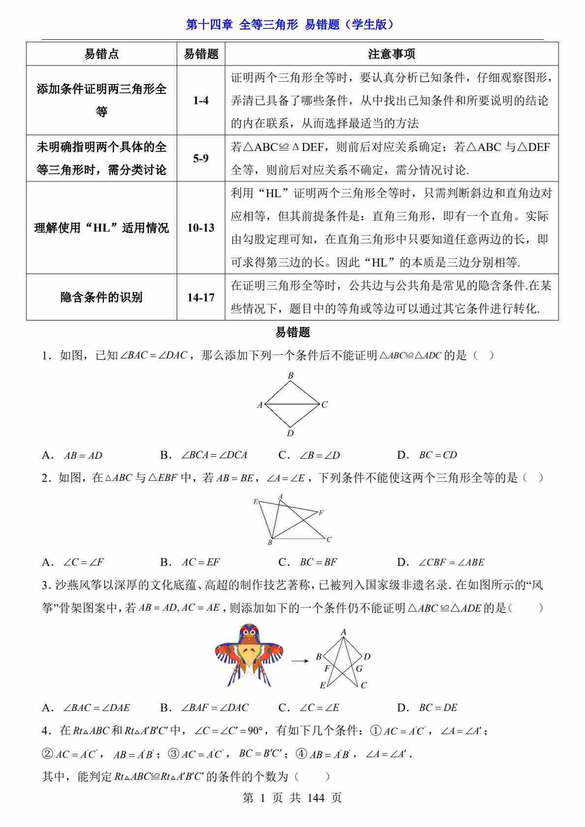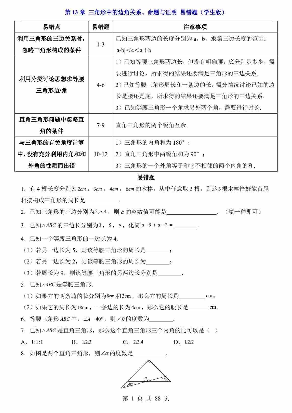 第13章 三角形中的边角关系、命题与证明(易错题)