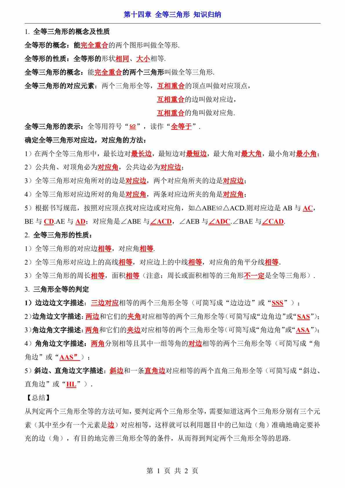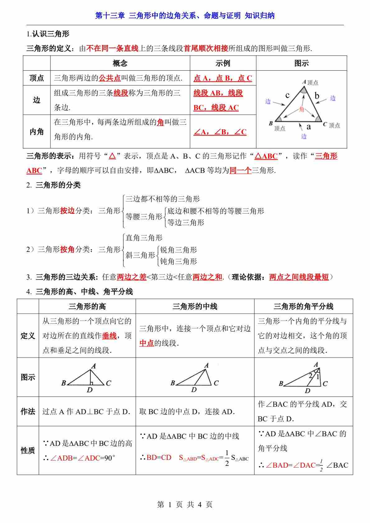 第13章 三角形中的边角关系、命题与证明(知识归纳)