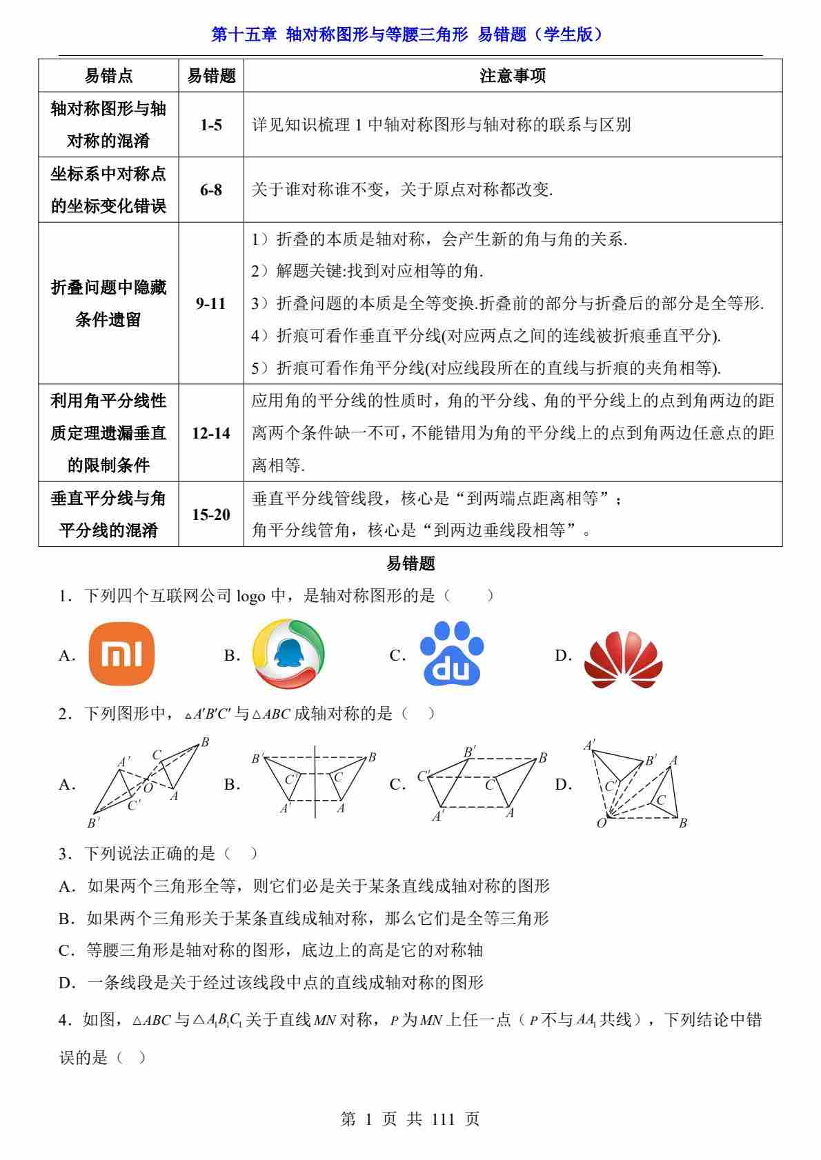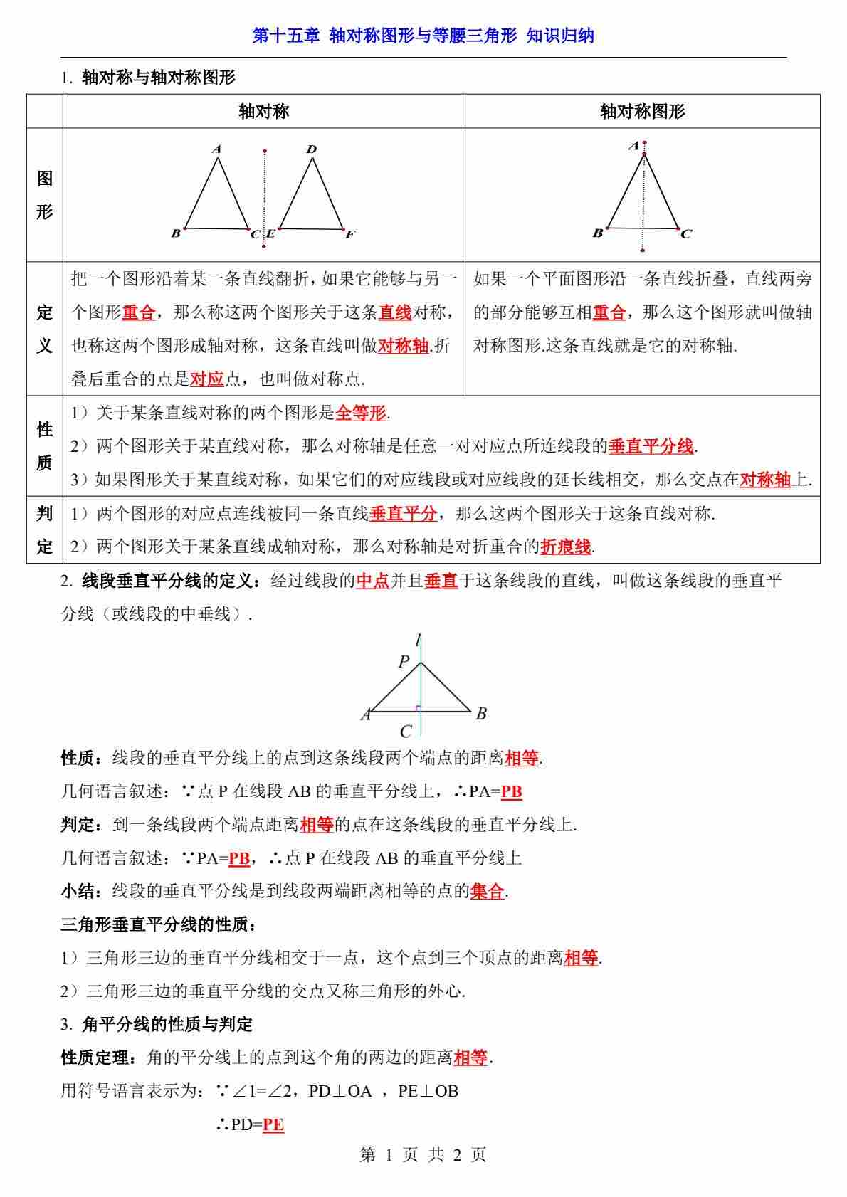 第15章 轴对称图形与等腰三角形(知识归纳)