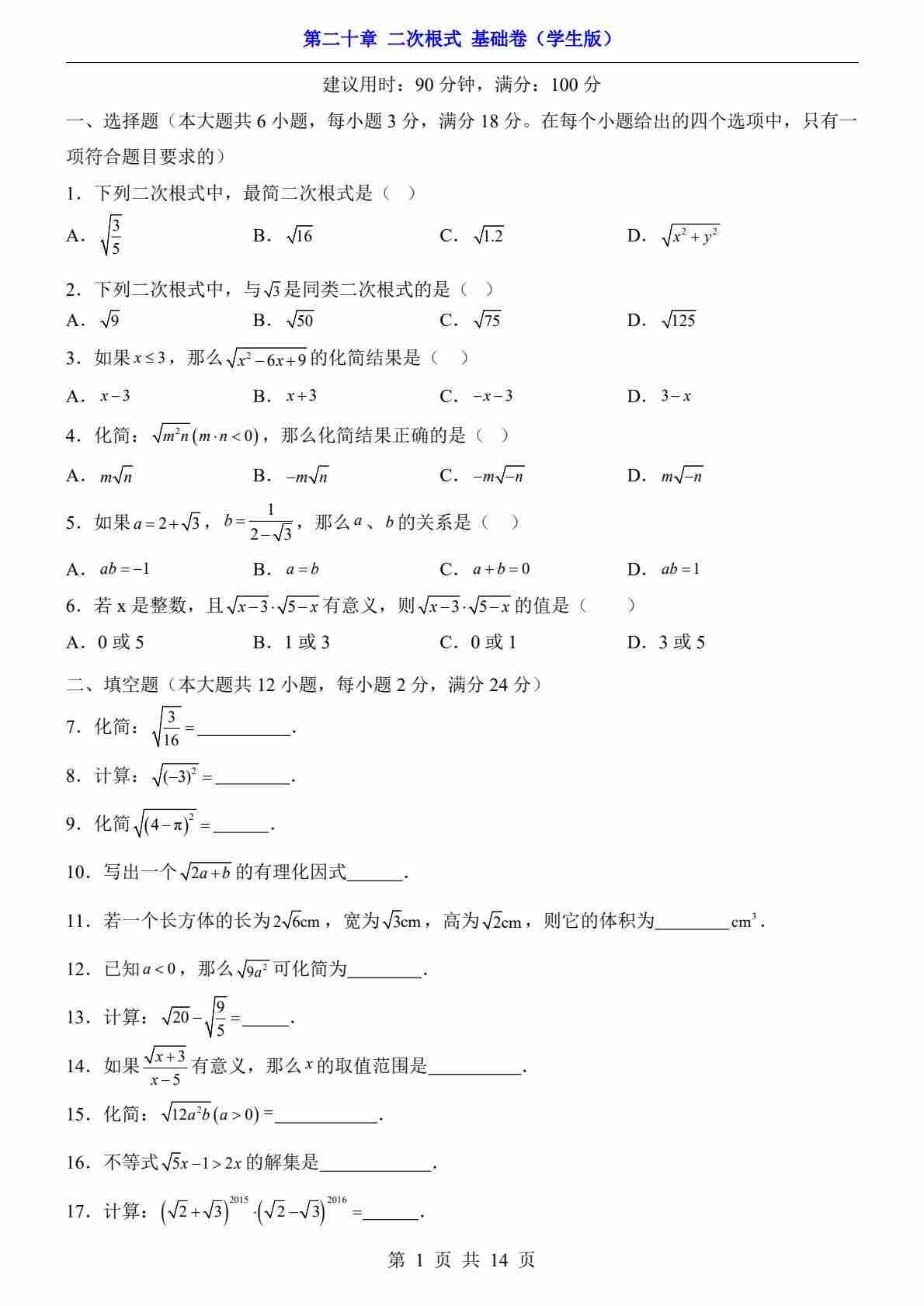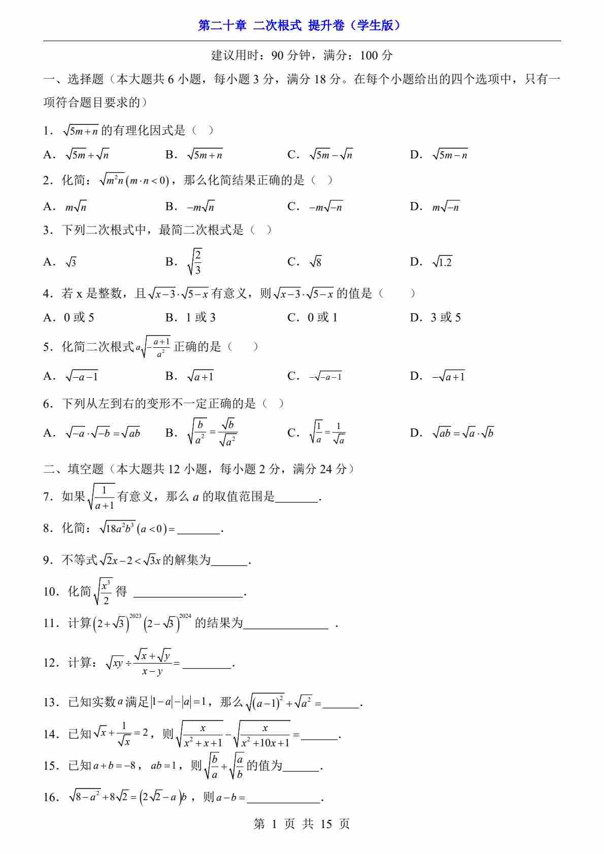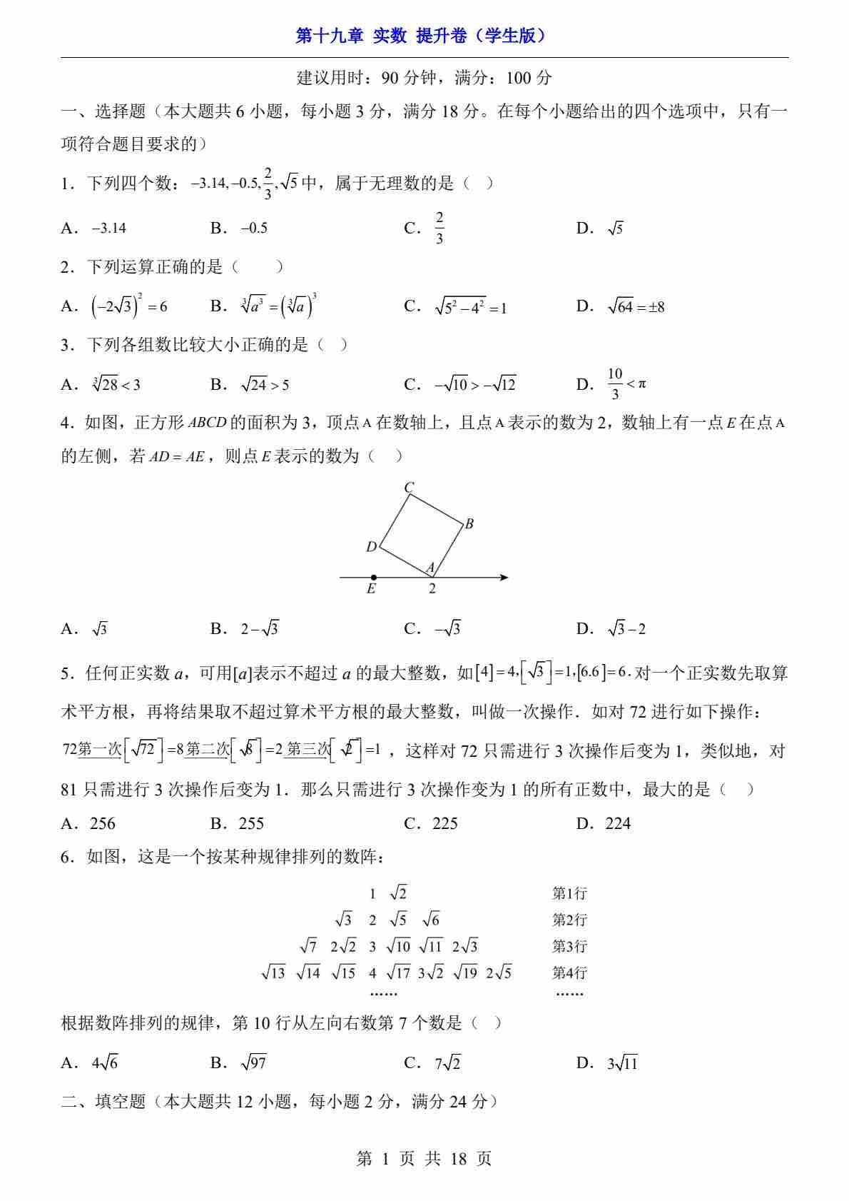 第19章 实数(单元测试·提升卷)(考试版A4)