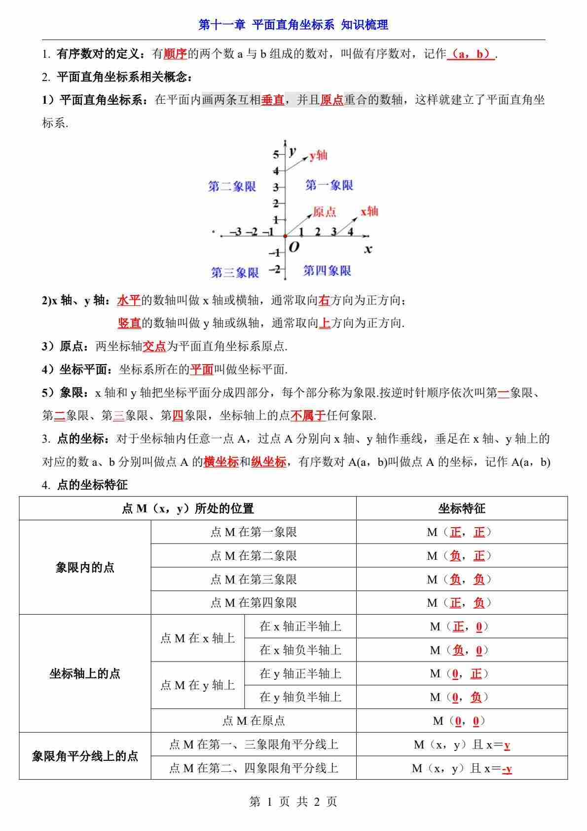 第十一章 平面直角坐标系(知识清单)(挖空版)