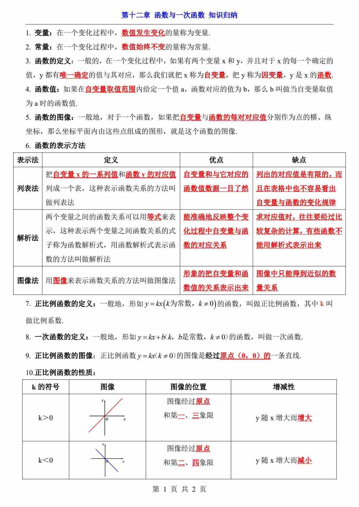 第十二章 函数与一次函数(知识清单)(挖空版)