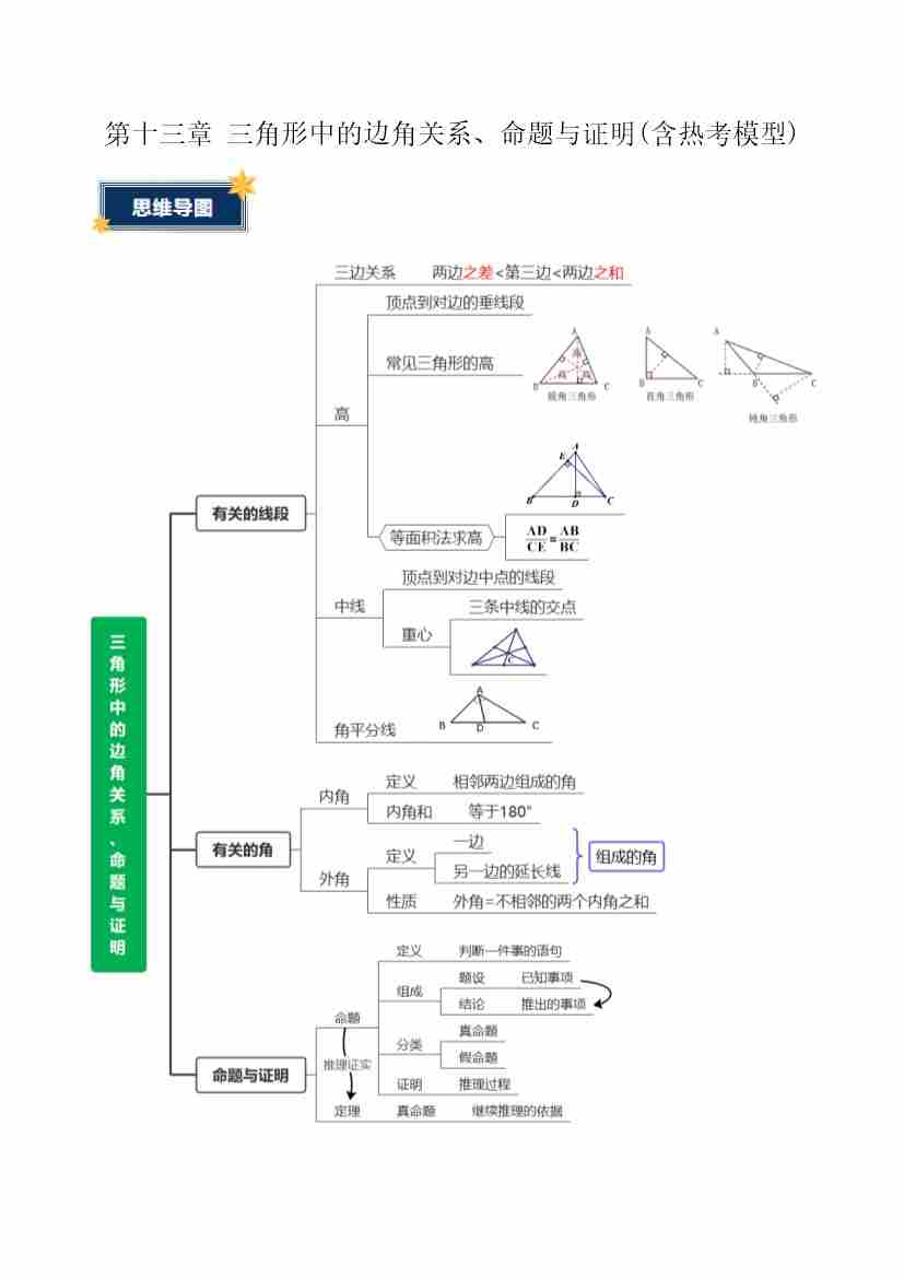 第十三章 三角形中的边角关系、命题与证明(含热考模型)(知识清单)(答案版)