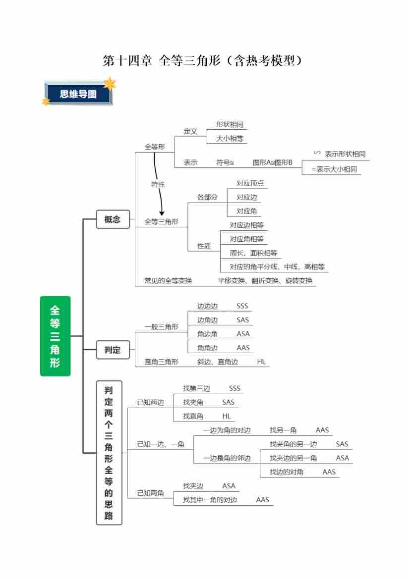 第十四章 全等三角形(含热考模型)(知识清单)(挖空版)