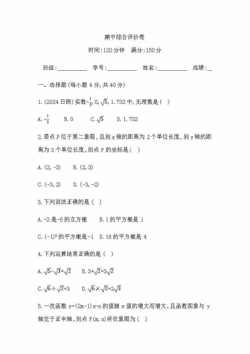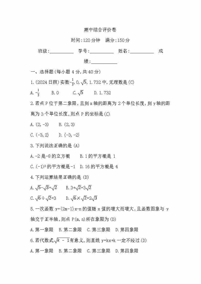 期中综合评价卷 学生版