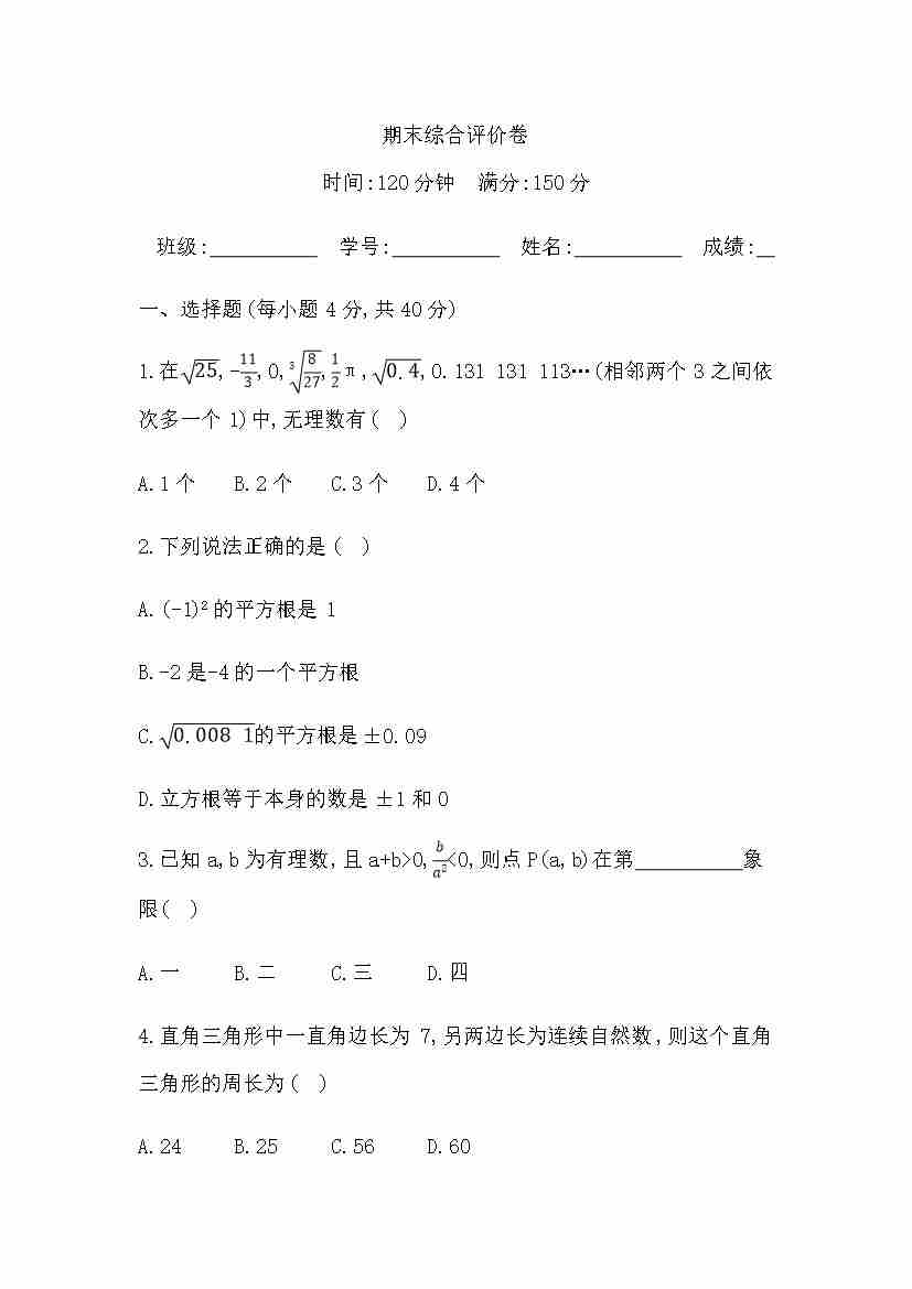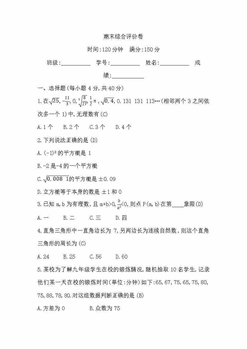 期末综合评价卷