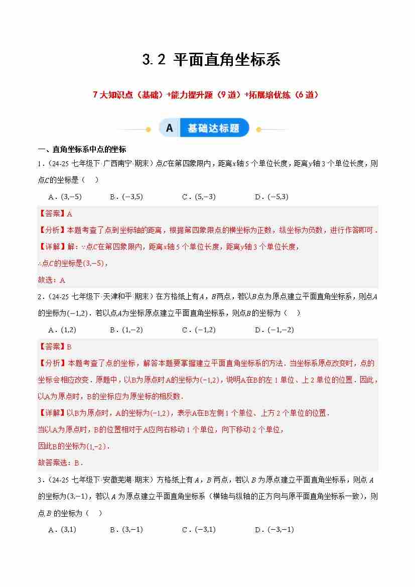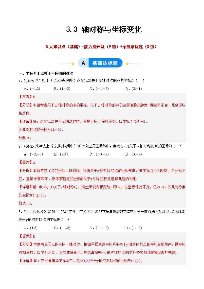 3.3轴对称与坐标变化(分层作业)(解析版)