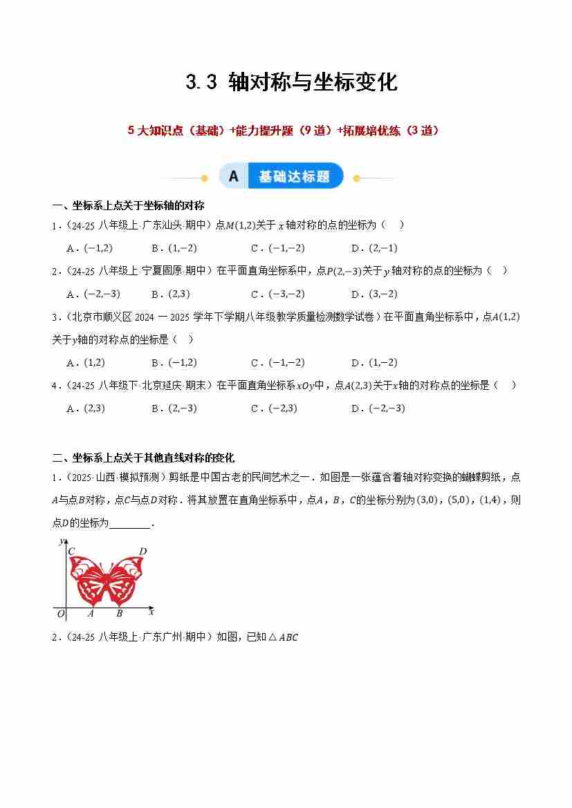 3.3轴对称与坐标变化(分层作业)(原卷版)