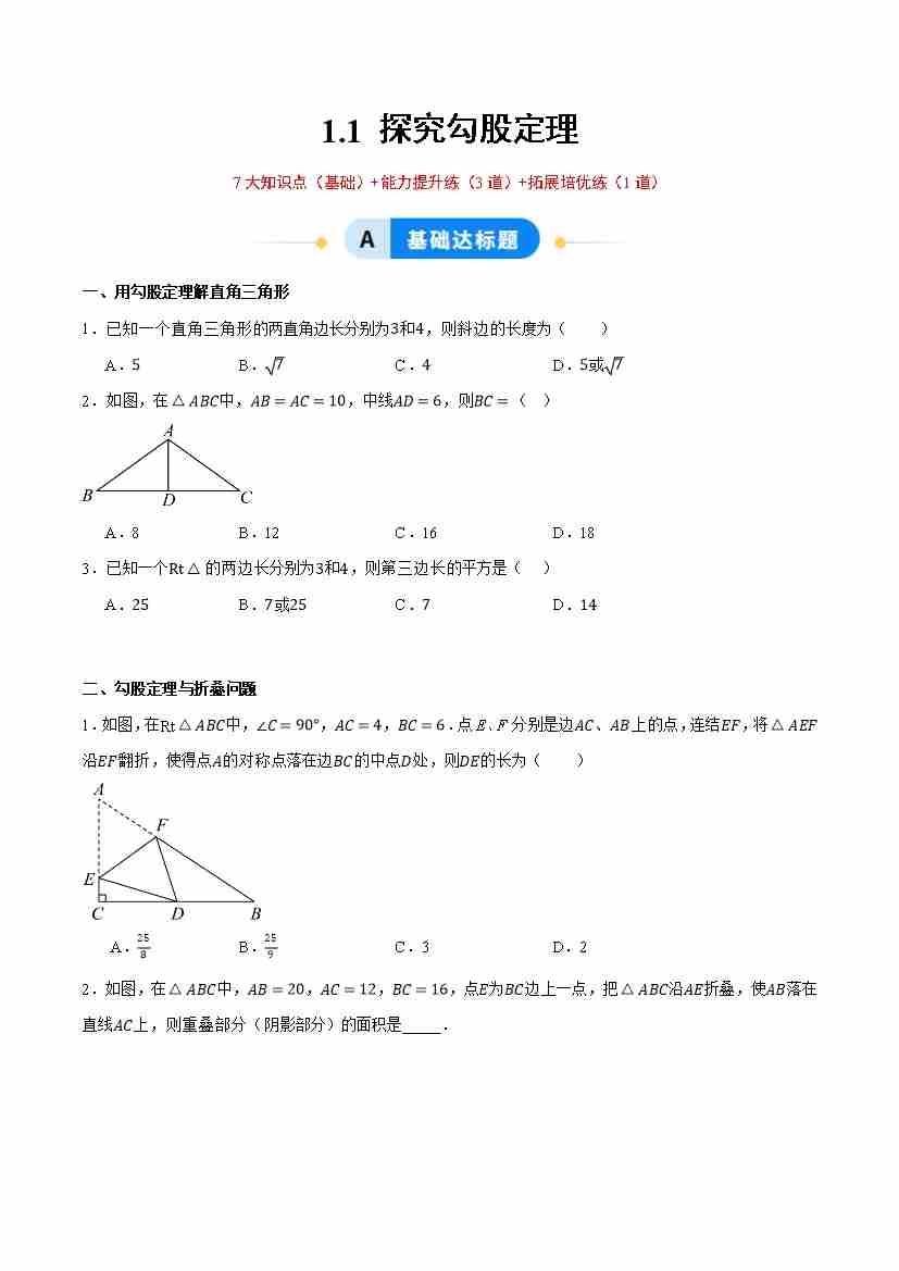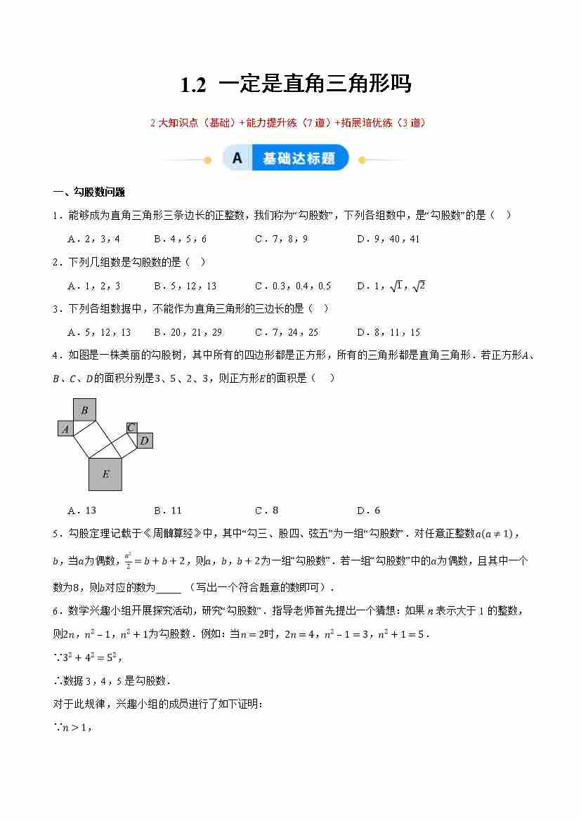 1.2一定是直角三角形吗(分层作业)(原题版)