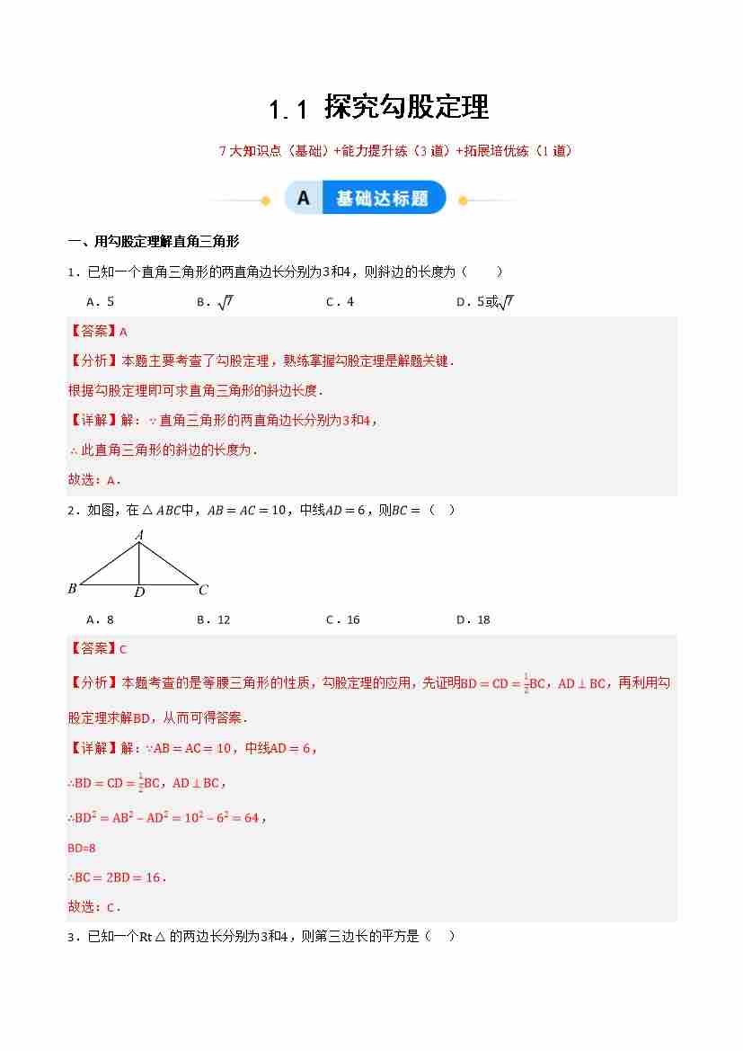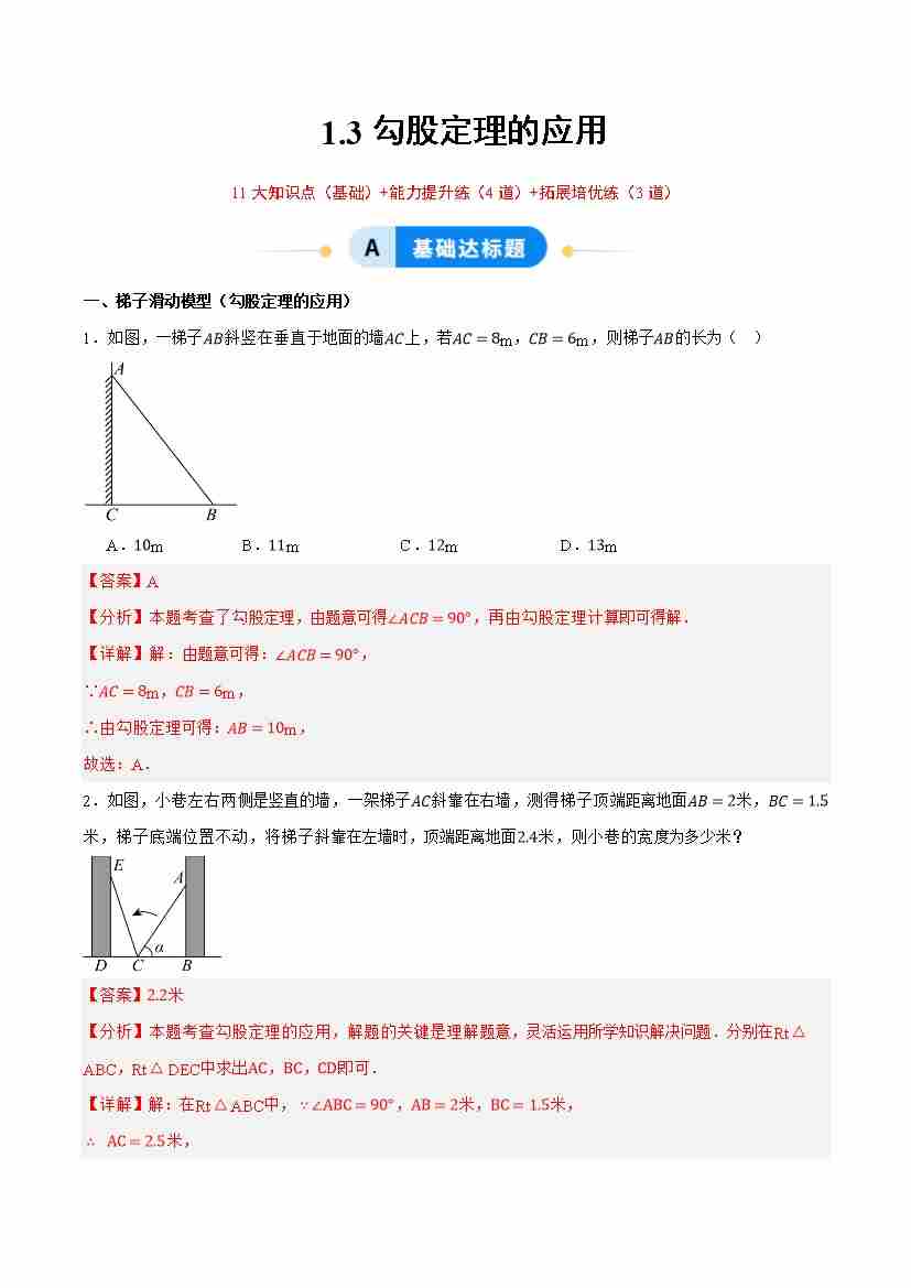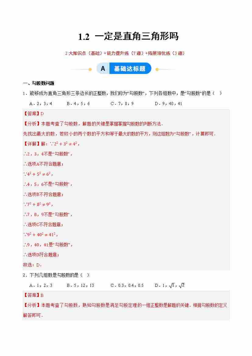 1.2一定是直角三角形吗(分层作业)(解析版)