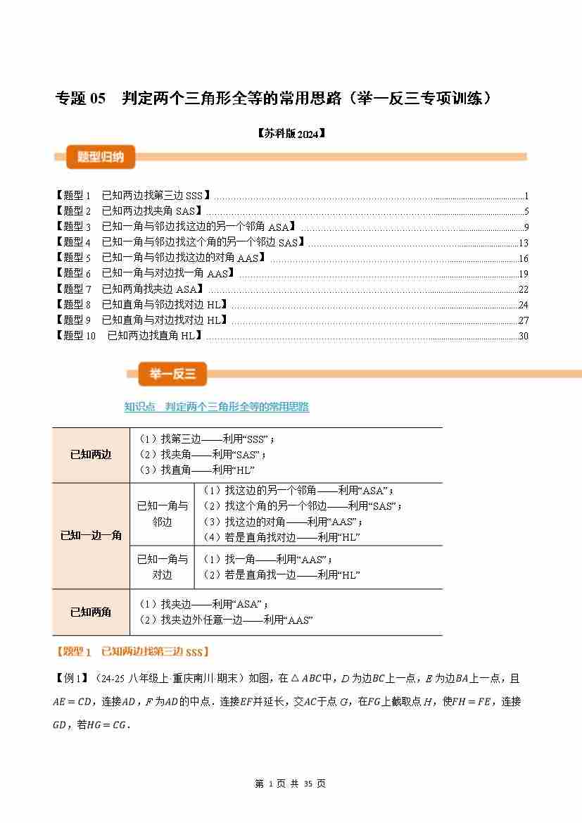 【苏科】专题05 判定两个三角形全等的常用思路(解析版)