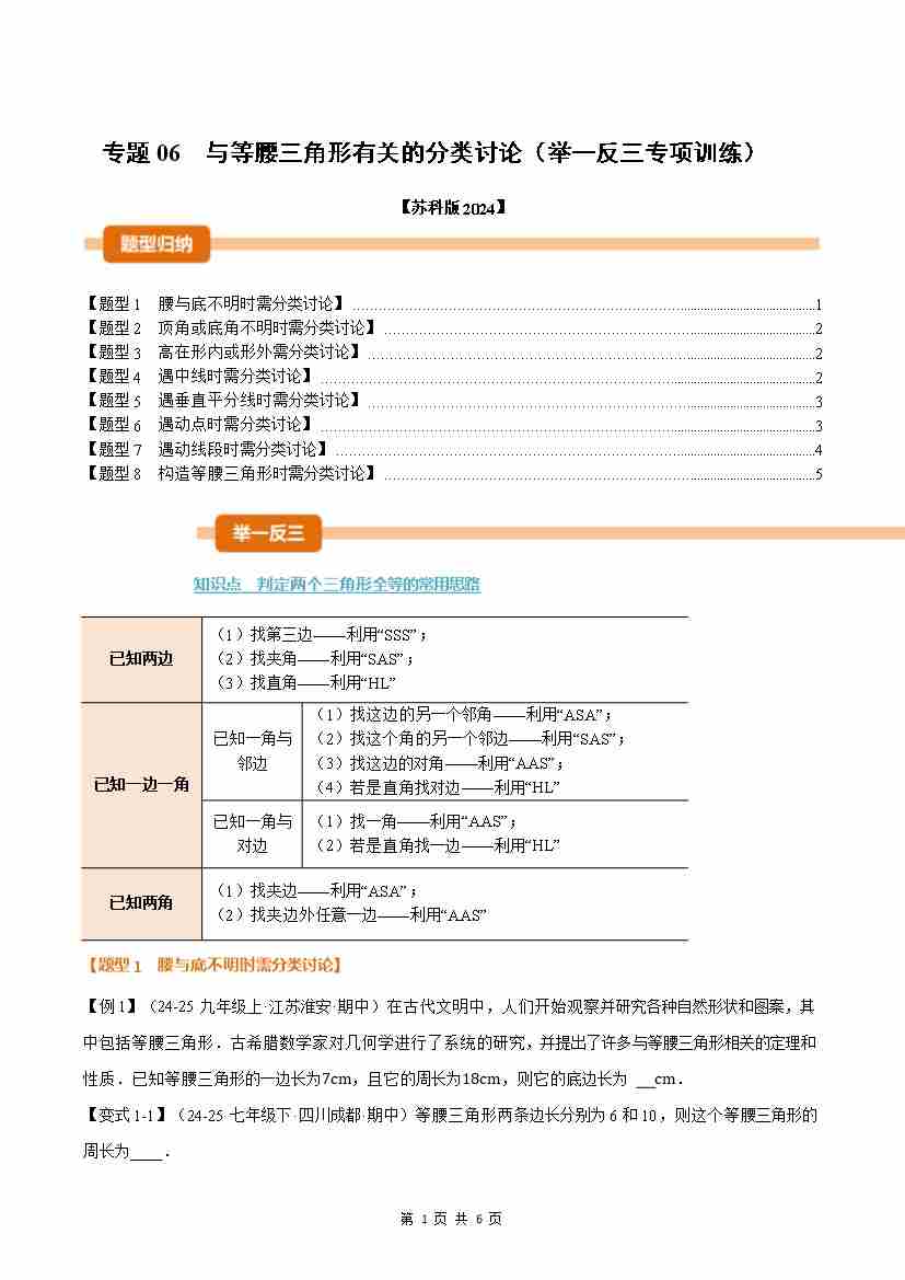 【苏科】专题06 与等腰三角形有关的分类讨论(原卷版)
