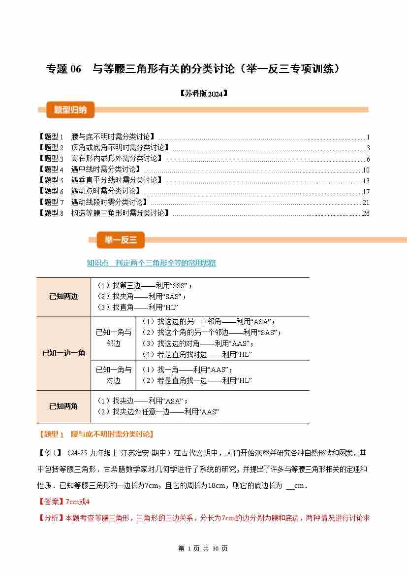 【苏科】专题06 与等腰三角形有关的分类讨论(解析版)