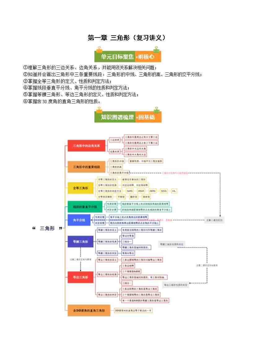 第1章 三角形(复习讲义)数学苏科版2024八年级上册(原卷版)