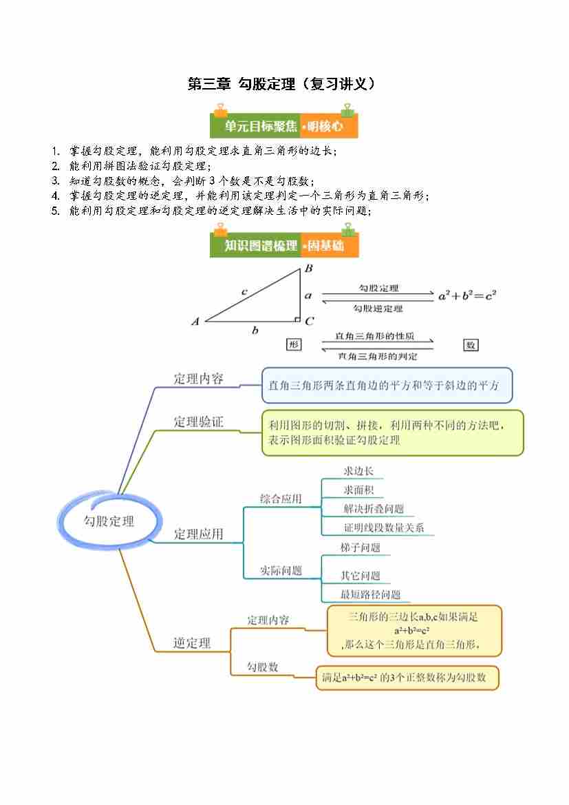 第3章 勾股定理(复习讲义)数学苏科版2024八年级上册(原卷版)