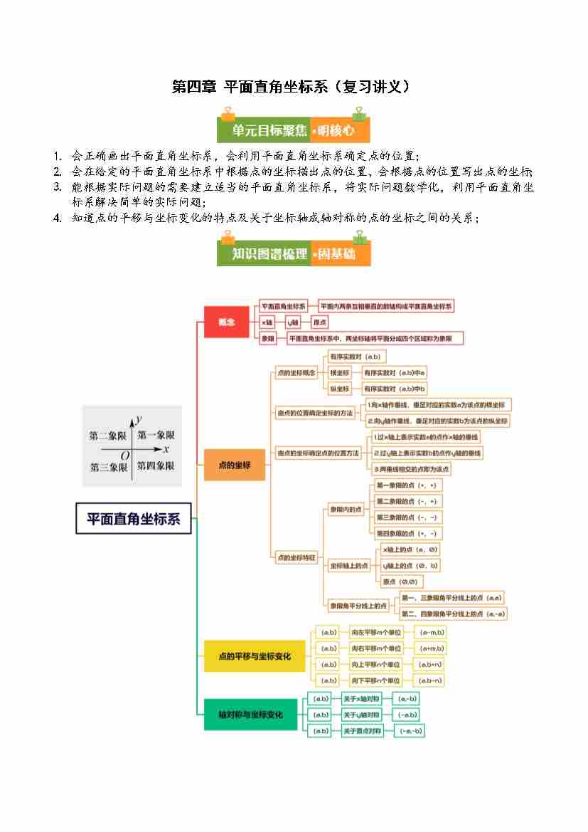第4章 平面直角坐标系(复习讲义)数学苏科版2024八年级上册(原卷版)