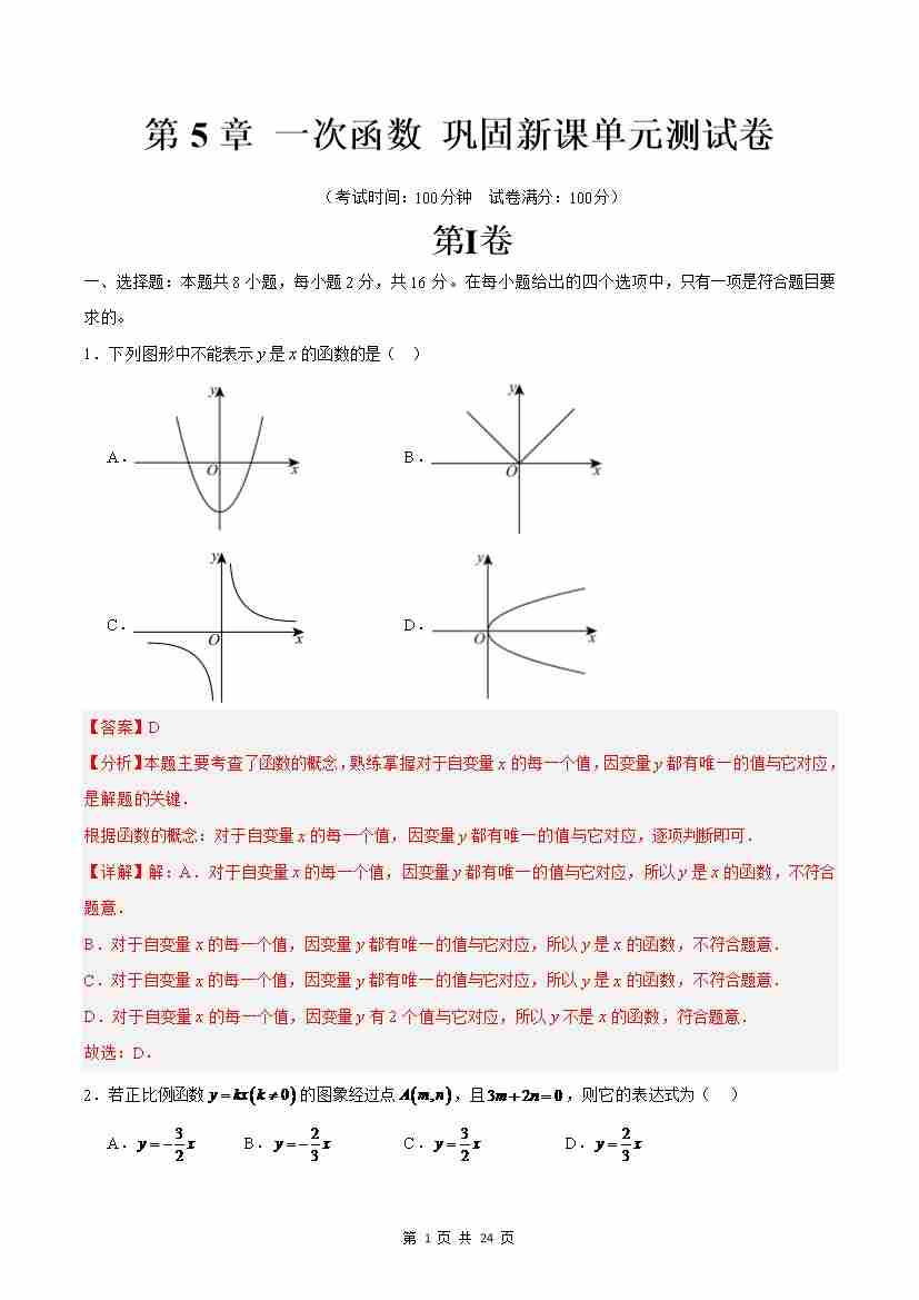 第5章 一次函数 巩固新课单元测试卷(解析版)