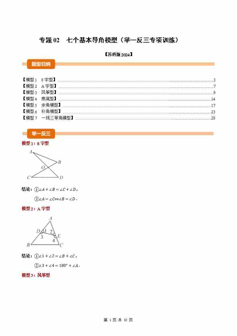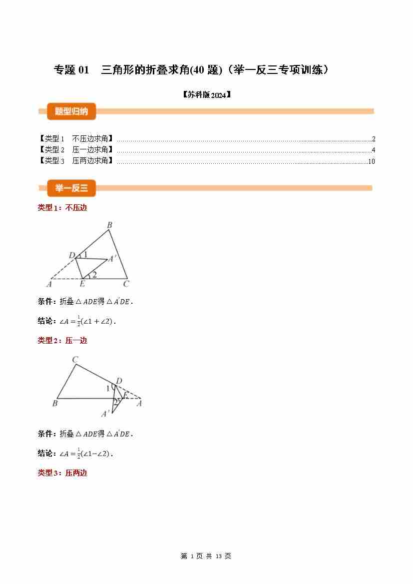 【苏科】专题01 三角形的折叠求角(40题)(原卷版)